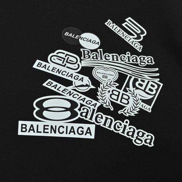 Balenciaga 25Fw Multi-Label Print Crew Neck Sweatshirt Ddd 480G High-Grade Combed Cotton Fabric, Original White Thick Hang Tag, Front and Back 3D Foamed Print with Strong Layering, Unisex Couple Style, Oversized Fit, Ddd Size: S-XL DDD