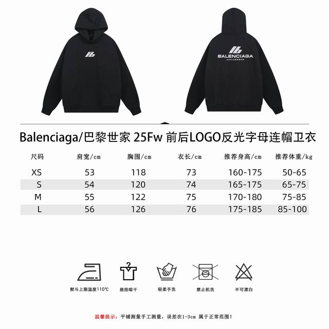 Balenciaga 25Fw Reflective Logo Hoodie (