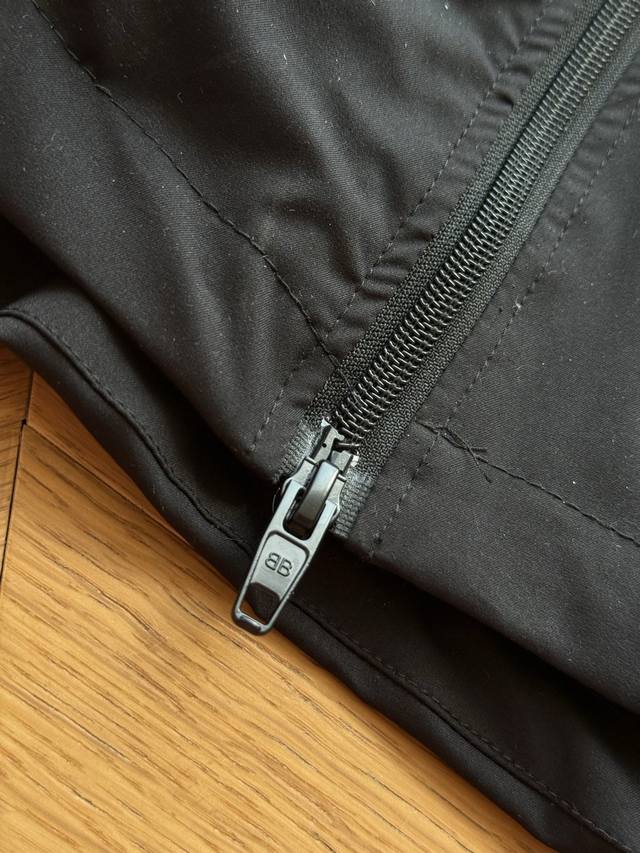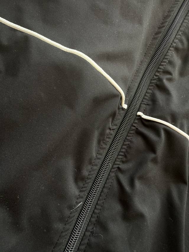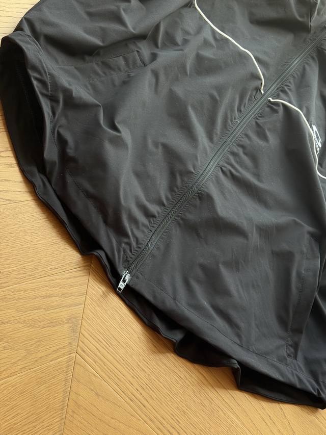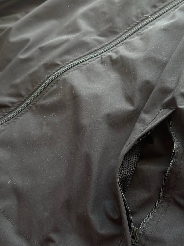 . Custom matte Taslon fabric with a three-grade polyester mesh lining. Super-loose fit. Side zipper pockets, stand-up collar, and internal concealed zipper pocket. Custom molded hardware zipper closure with dual pulls for a smooth, seamless fit. Hand-pulled inserts are time-consuming and labor-intensive. Original logo, washable hangtag packaging.