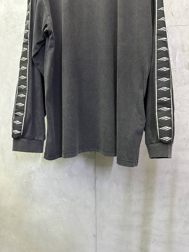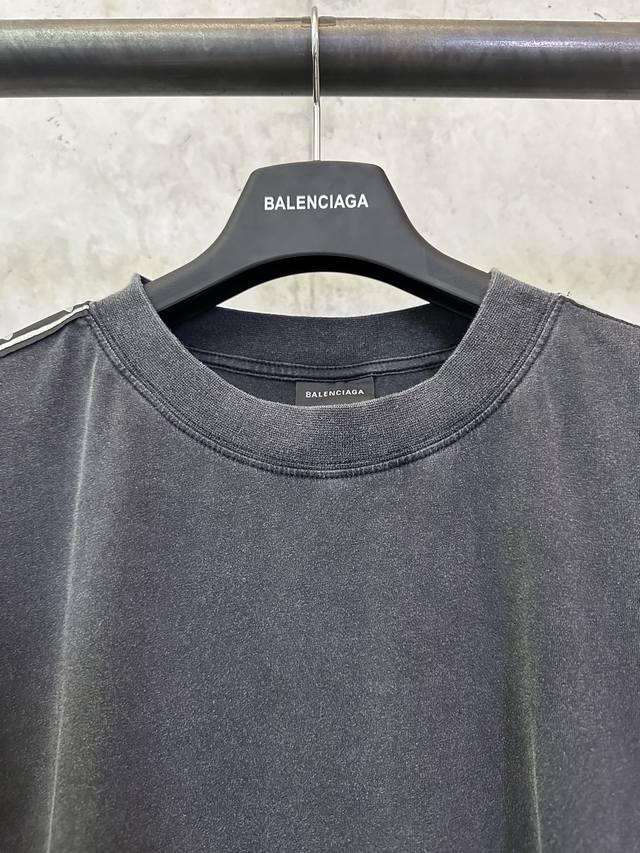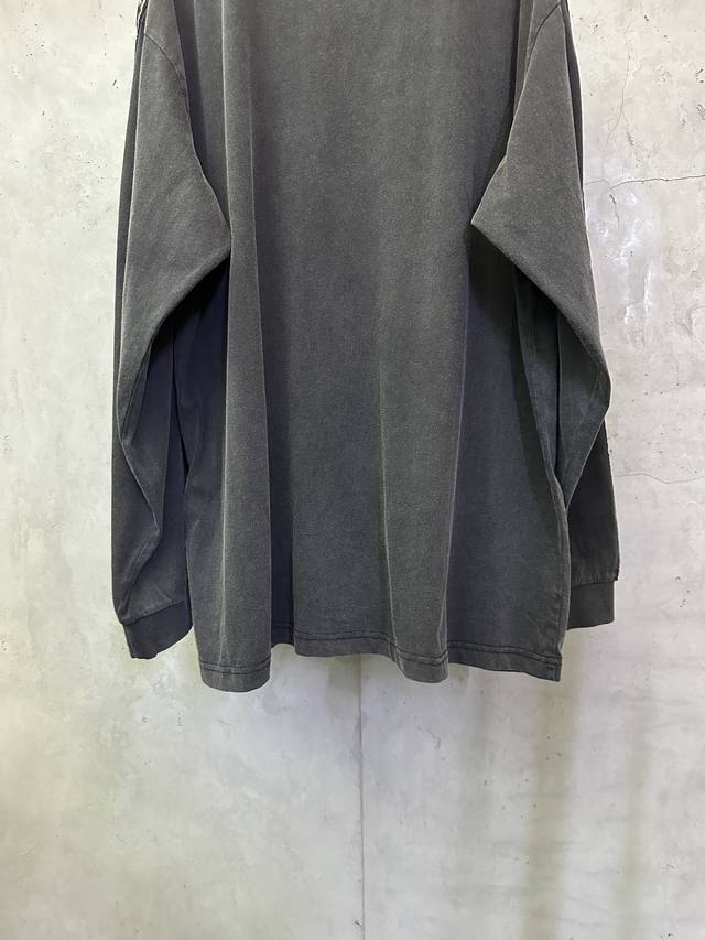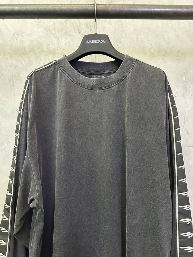 Balenciaga 25Ss 3B Jacquard Logo Long-Sleeve T-Shirt. Fabric: 24S double-yarn serge cotton (G) with 32S double-yarn 1*1 ribbing (300G). Custom hardware and ribbing accessories. Unisex style. Color: Washed black/grey. Size: Xs, S, M, L.