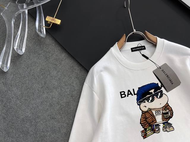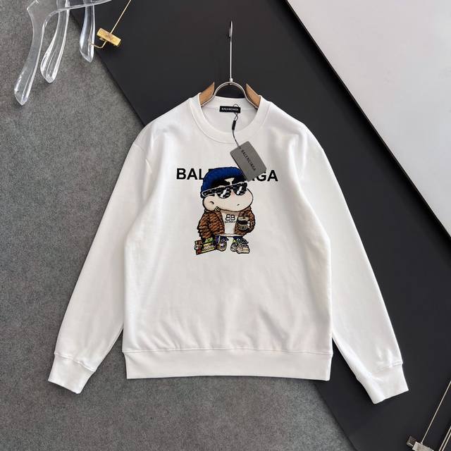 Balenciaga 25SS Autumn/Winter New Fleece-Lined Crew Neck Sweatshirt. A timeless classic style with imported digital print. Made with custom 420g fleece lining, thick, structured, and well-formed. Impeccable details and a fantastic fit! A trendy slightly oversized unisex style. Colors: Black, White. Sizes: M-4XL.