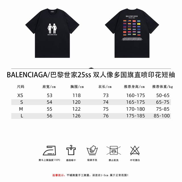 Balenciaga 25Ss double portrait multi-national flag direct-injection print short-sleeved shirt