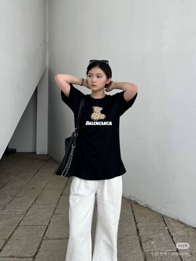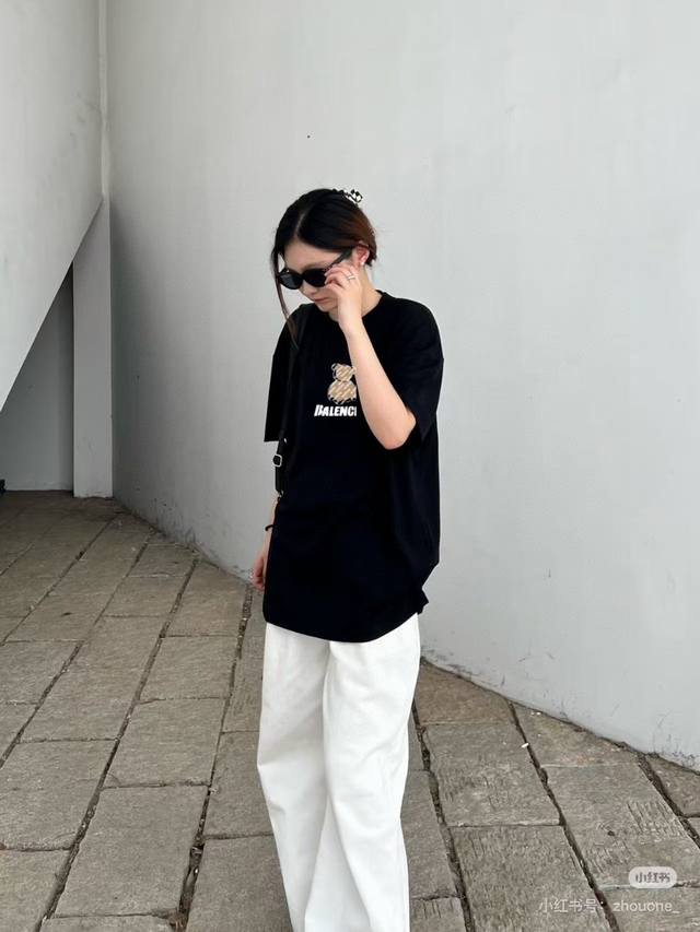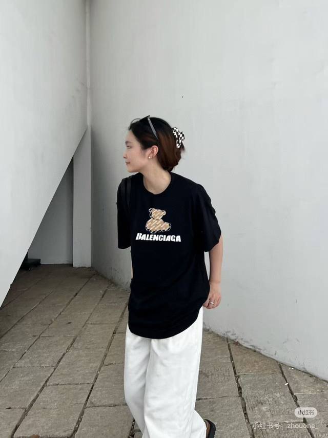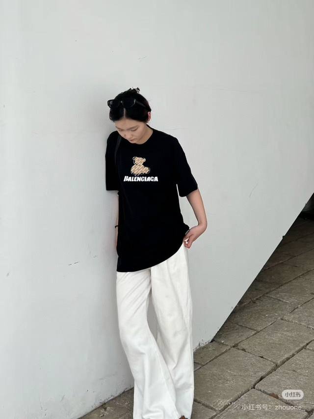 Balenciaga 25Ss full print bear print short sleeve high version heavy work short