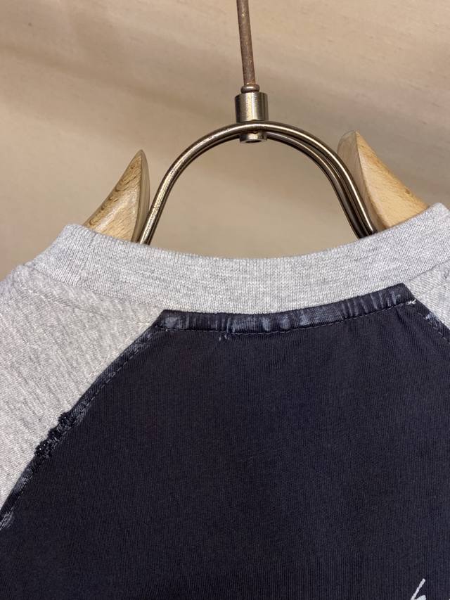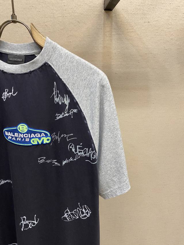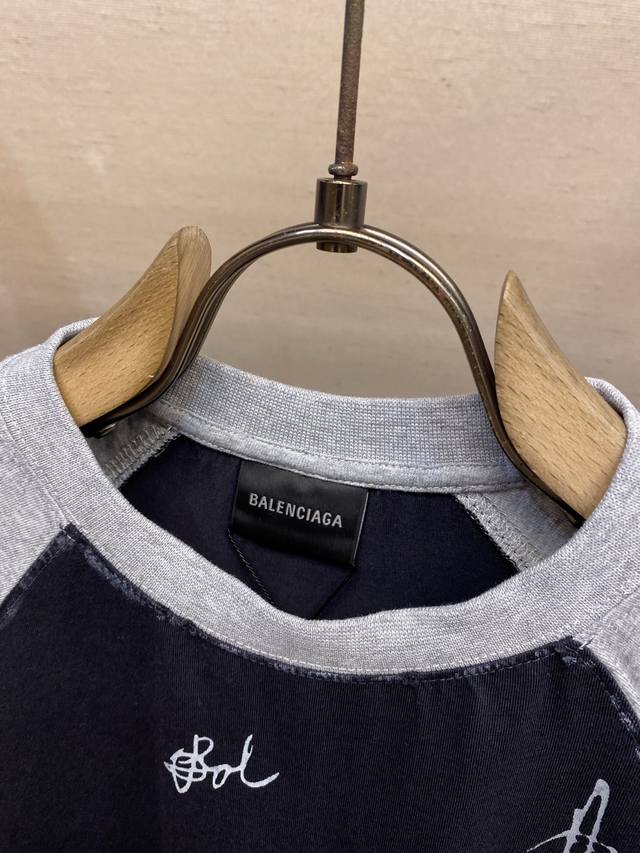Balenciaga, 25Ss New Patchwork Raglan T-Shirt Ddd Unisex In Stock DDD Fabric: 24S Double Yarn Special Textile Compact Cotton 185G, Rib: 32S Double Yarn Stretch 270G. The pure cotton fabric has a plain weave structure, with a smooth and delicate surface, dense texture, and good moisture absorption, breathability, and comfort, keeping you dry and comfortable. The wash-resistant, elastic, and environmentally friendly adhesive formula, combined with a metallic, technological signature design, is a key element of its street style. The printed areas can stretch without breaking, and the surface is coated with a nano-level protective film to reduce fading due to friction. The appliqu