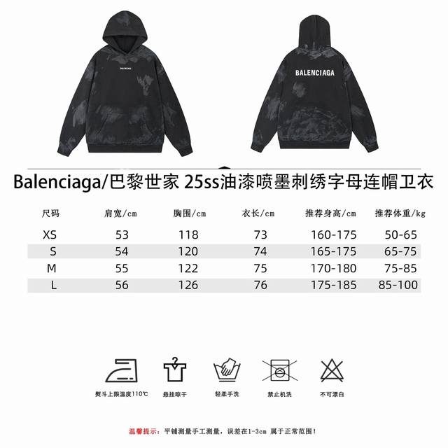 Balenciaga 25Ss paint-embroidered lettering hooded sweatshirt