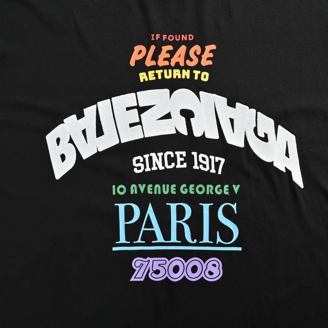 Balenciaga 25Ss reverse letter embroidery print short sleeves