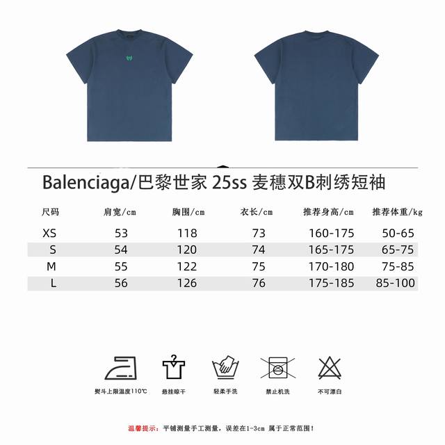 Balenciaga 25Ss wheat ear double B embroidered short sleeves The fabric is woven