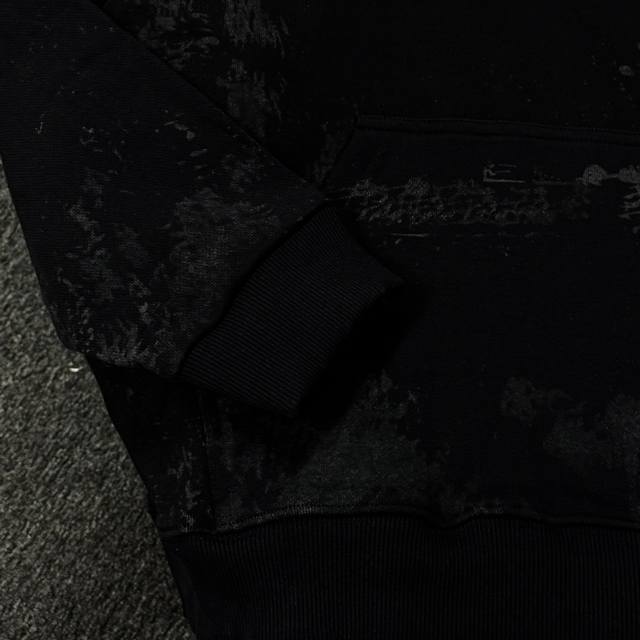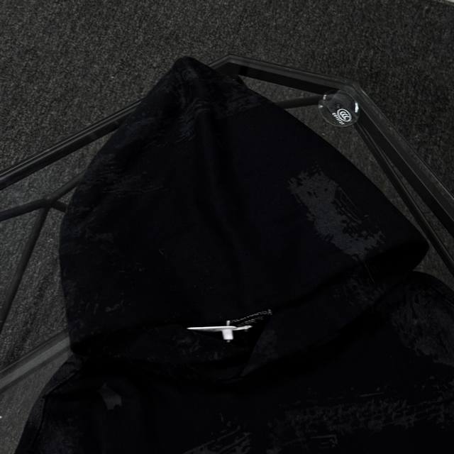 Balenciaga 25th generation high-quality hooded sweatshirt, drop-shoulder loose fit, 100% cotton fabric, 480g/m?, no deformation or shrinkage, complete with tags, unisex style. Features: distressed and ripped details, imported Conoco digital direct-to-garment printing, hand-painted graffiti, appliqu