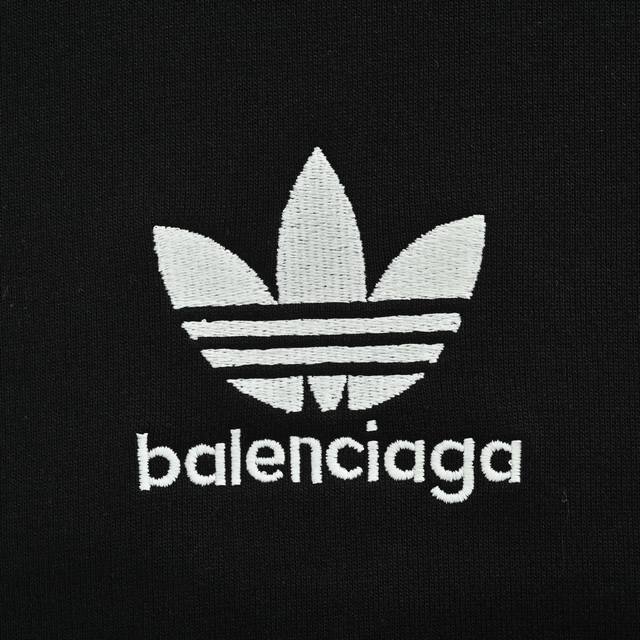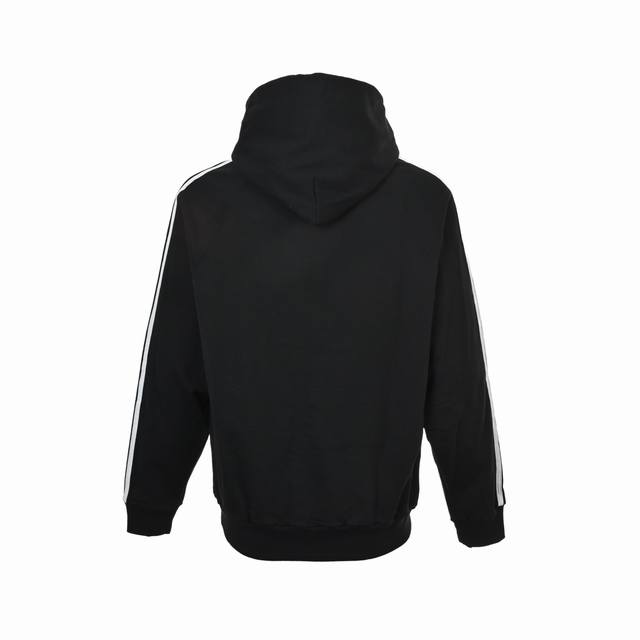 Balenciaga & Adidas Originals Embroidered Three Stripes Hooded Sweatshirt. Made of 100% cotton, custom-woven and dyed by Zp in Paris. Weight: 450g/m?, clean surface, clear weave, soft and comfortable. Ribbing is custom-dyed for color consistency. Classic embroidery uses imported embroidery, clear, three-dimensional lettering, no frayed edges. Not made from market images. Welcome to compare. Fit: Unisex, relaxed, drop-shoulder style. Size: Xs-L.
