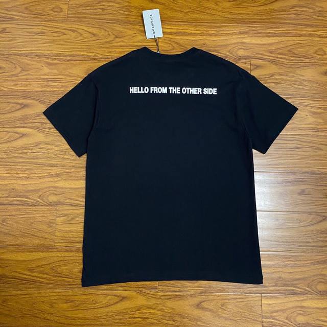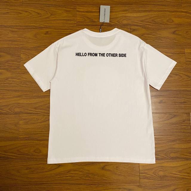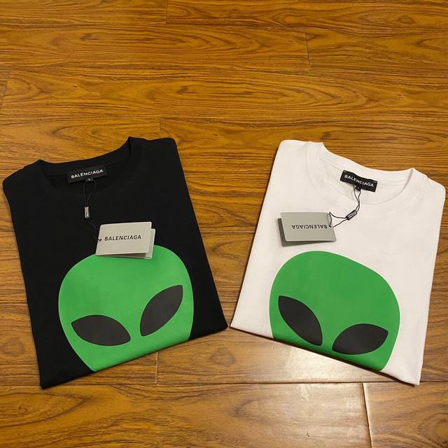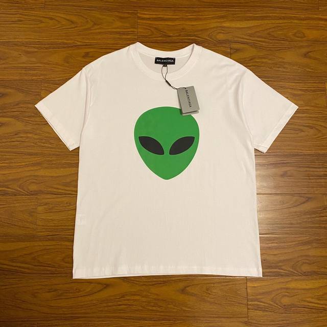 Balenciaga alien mask letter print, 260g double yarn pure cotton fabric, custom-made, loose fit, best-selling style, highly recommended. Colors: Black, White. Sizes: Xs-L.