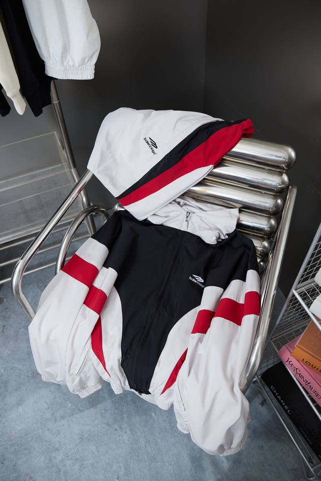 Balenciaga Blcg 24Fw catwalk-style 3B red and black patchwork tracksuit.
