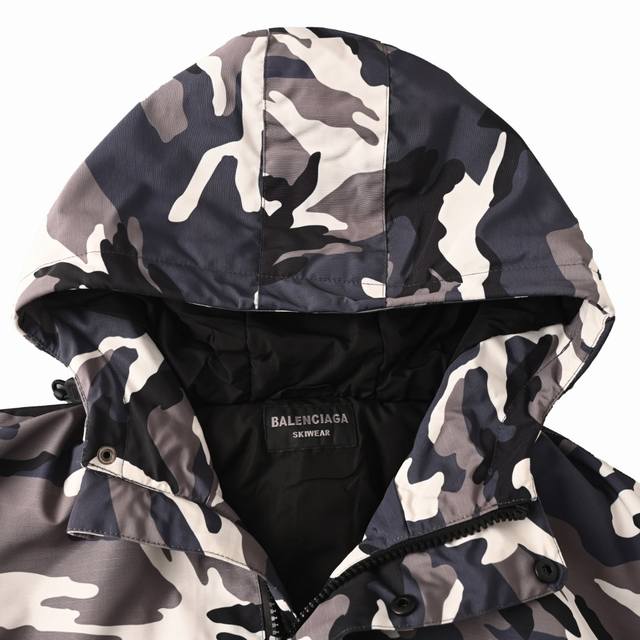 Balenciaga Blcg 3B Ski Quilted Windbreaker Camouflage Hooded Ski Jacket