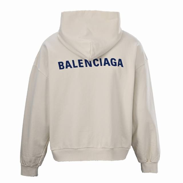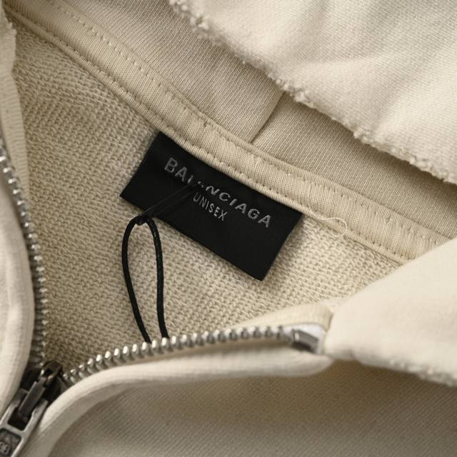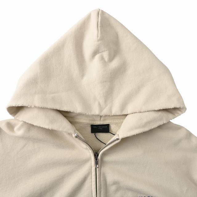 Balenciaga Blcg Embroidered Zipper Hooded Sweatshirt (Authentic, purchased for 9200 RMB). Made from 100% combed cotton Parisian terry cloth, 420g 1*1 ribbed knit, washed and distressed, imported embroidery, custom zipper, brand label, loose fit. Size: SL.