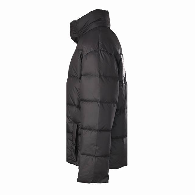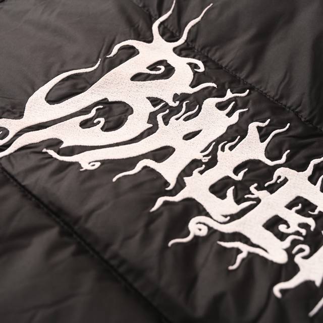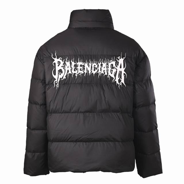 Balenciaga (Blcg) Flame-Outline Stand Collar Down Jacket. Made of nylon fabric, this jacket offers excellent wind and water resistance. The relatively lightweight nylon, combined with the down filling, makes it both lightweight and warm, easy to carry and wear, especially suitable for outdoor activities. It's filled with high-quality 90% white duck down, known for its high loft and superior warmth. The unique cut and design emphasize ergonomics, ensuring a comfortable fit and freedom of movement. The back features an imported Meclo embroidery machine that scans the original pattern before creating a pattern with high-quality thread, continuously adjusting the density to achieve the desired effect. Size: S-XL