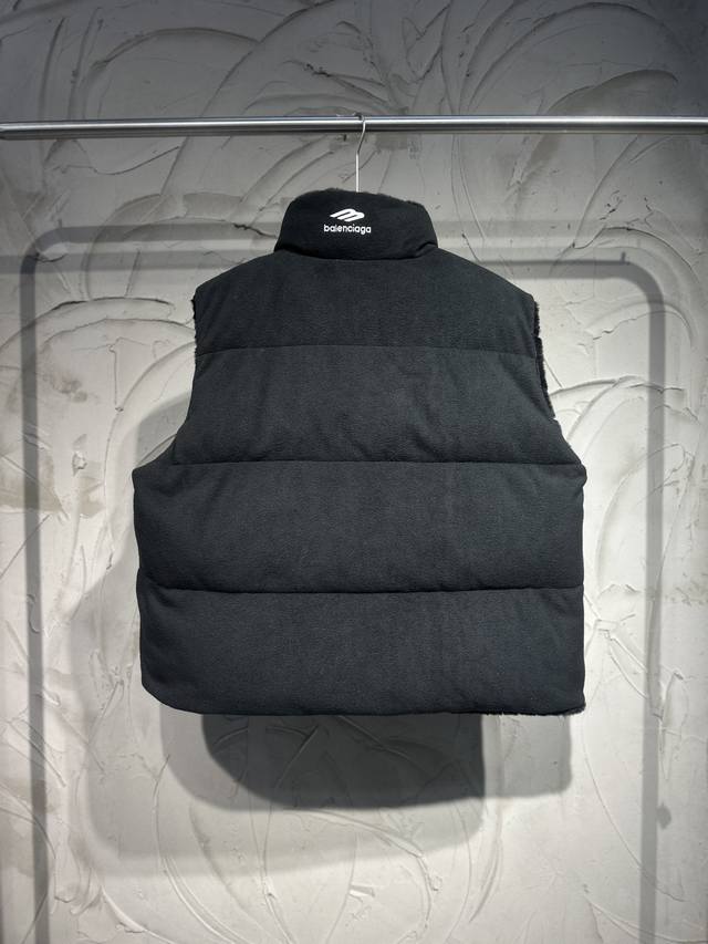 Balenciaga (Blcg) Paris 25Fw New Ski Collection 3B Sports Icon Ski Letter Embroidery Reversible Fur Cotton Vest, wear it as two pieces in one. Custom letter logo webbing, easy to wear on both sides, stylish no matter how you style it! Oversized, unisex. Color: Black. Size: 1-2-3.