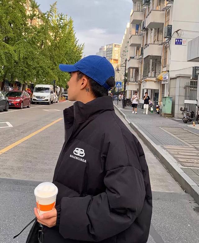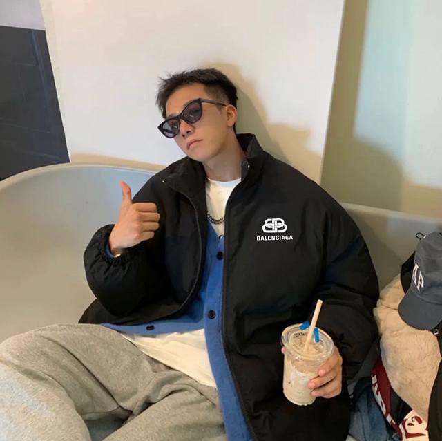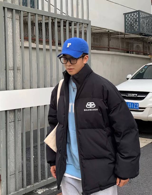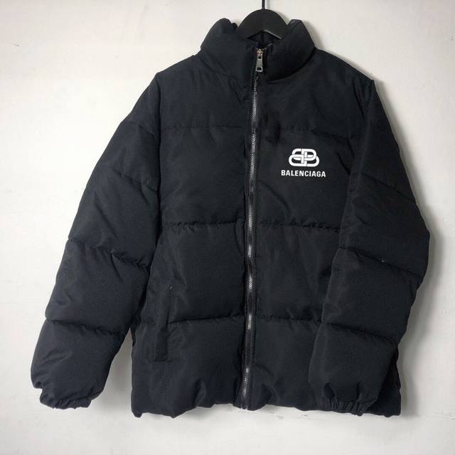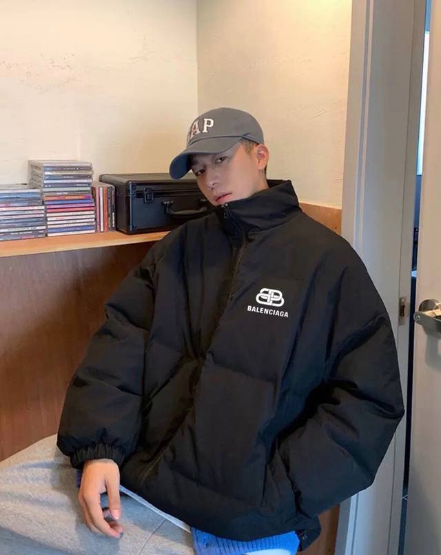 Balenciaga classic loose-fitting down cotton coat with buckle, stand-up collar, puffer jacket. High-quality down cotton coat series. Made with soft Oxford cloth and 750 Xinjiang down cotton, high-density filling for warmth and comfort. Loose fit enhances movement flexibility. Features high-end printed original custom label and hangtag. You get what you pay for; compared to low-priced, low-end goods, this coat is twice as thick and of high quality. Hand-stuffed cotton process ensures the entire garment is thick, fluffy, and highly warm. It can withstand temperatures as low as -30 degrees Celsius. Worth buying. Color: Black. Size: M, L, XL. Chest, Shoulder Width, Length: M 125 61 70, L 130 63 72, XL 135 65 74. Note: Manual measurement may have an error of 1-3 cm.