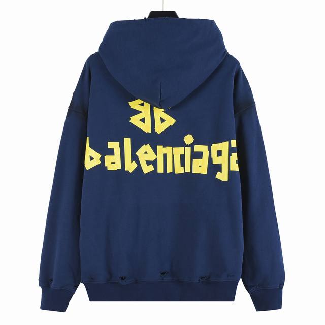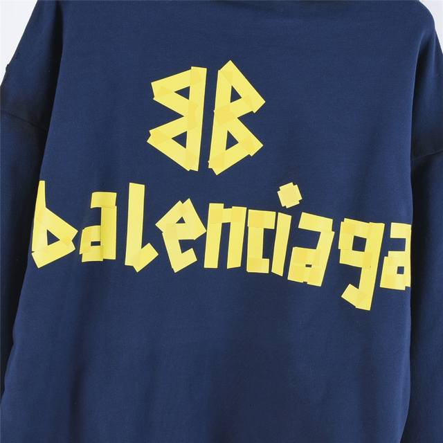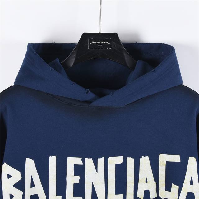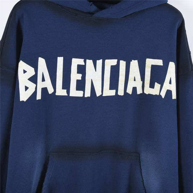 Balenciaga Classic Masking Tape Washed Ripped Hooded Sweatshirt