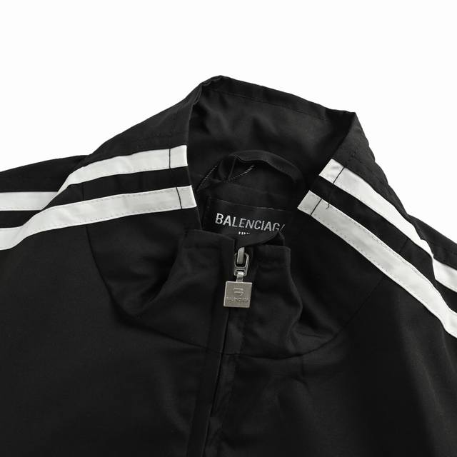 Balenciaga color-blocked jacket/suit. Made with custom recycled nylon waterproof fabric with a slightly wrinkled finish, and lined with cotton and modal fibers! Suitable for all seasons. Features a zippered design with side zippered pockets, a high stand collar on the front and back. Embroidery is done using a Japanese-imported Tajima high-speed embroidery machine, resulting in a three-dimensional, full, and clear finish. Custom-made hardware includes a zipper pull, a wash tag, and brand packaging. The color-blocked design adds a touch of youthful energy and sporty style. It's incredibly versatile and can be worn separately for a super stylish look. Suitable for various occasions and occasions, this unisex jacket is both practical and fashionable. Size: M-XL. In stock and ships immediately.