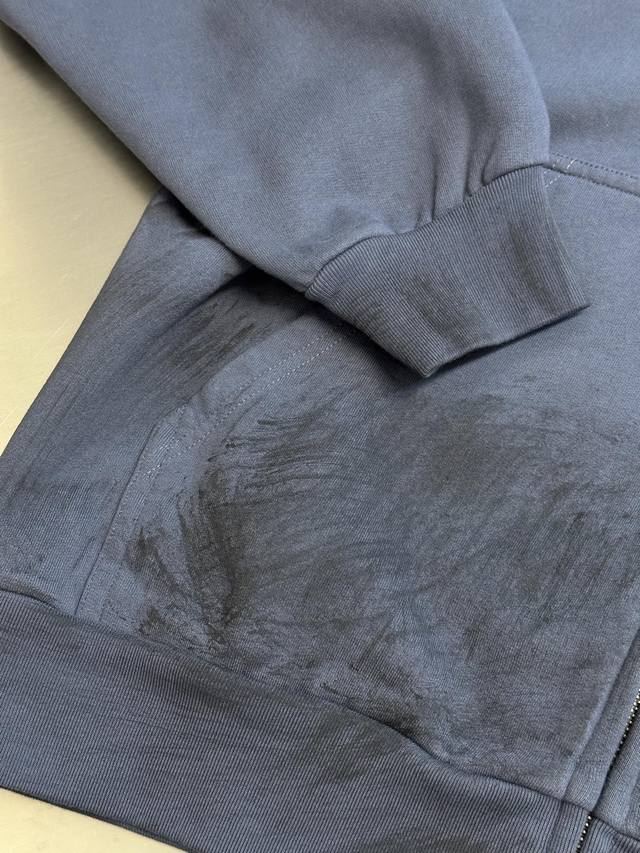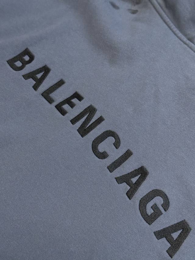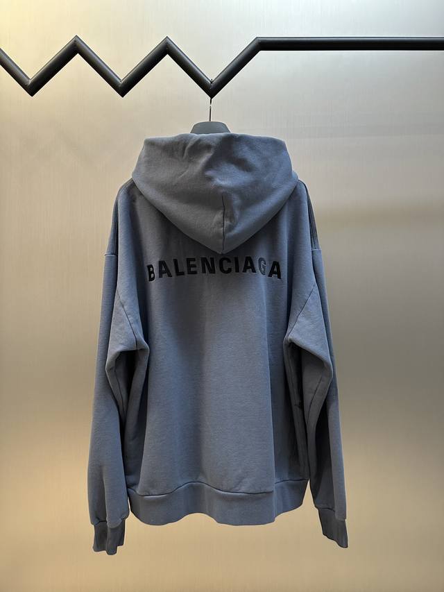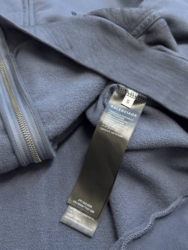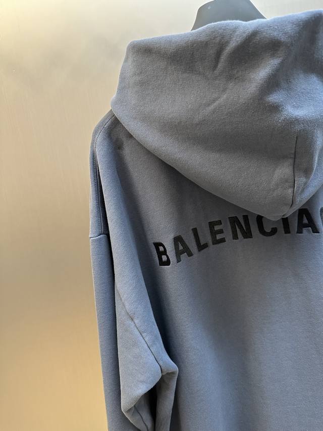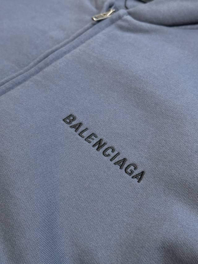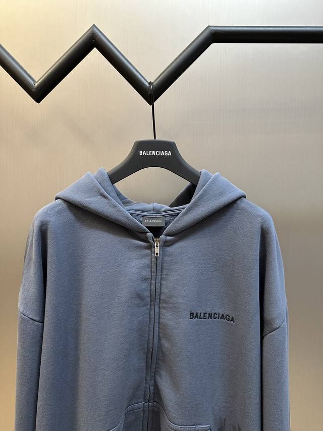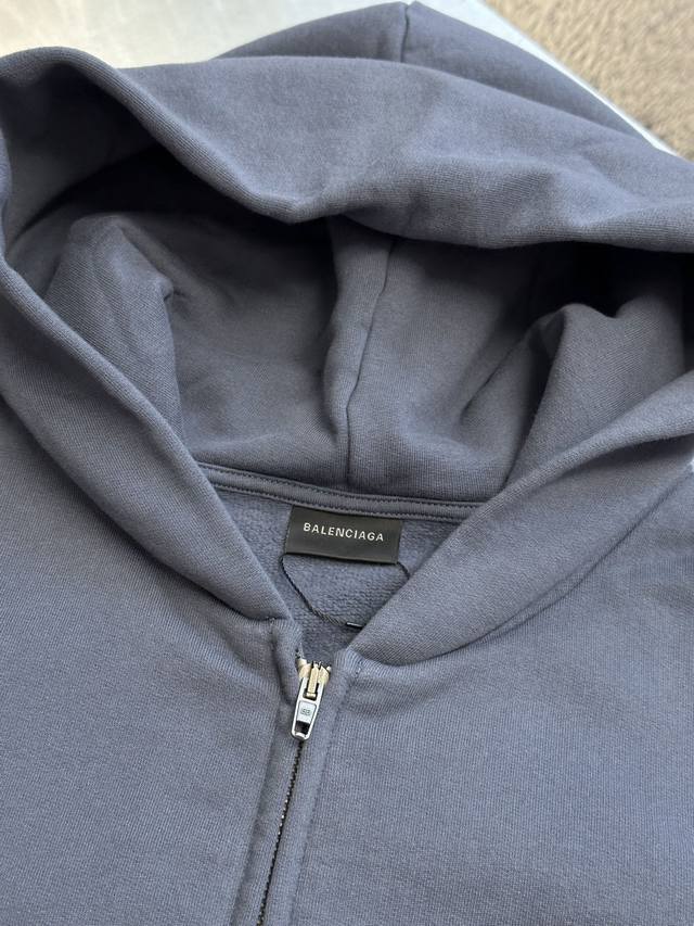 Balenciaga Distressed Embroidered Zipper Hooded Sweatshirt (DDD) No drawstring hood, zipper closure, graffiti-style spray paint distressed finish, imported machine embroidery. (DDD) Size: Xs SML (DDD)