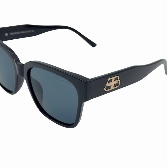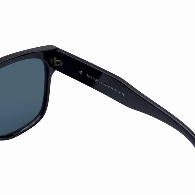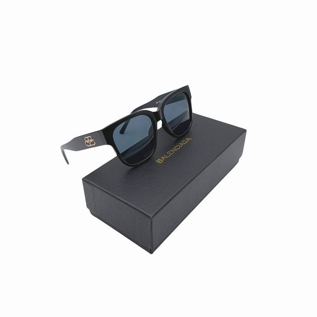 Balenciaga D-shaped square-shaped acetate sunglasses, unisex, couple's pair, black. Eastman Acetate Renew is an acetate alternative containing some bio-based materials. Temple length: 14.5cm, bridge length: 1.5cm. Made from 40% bio-based materials and 27% Eastman Acetate Renew. Square shape, contoured to the face. Balenciaga logo on the left temple. Laser brand logo on the right lens. Lens material: Cr 39. Lens category: 3. UVA and UVB protection. Suitable for optical lens replacement. Origin: See product label. Wipe with a soft cloth. Bb0262Sa. Material: Acetate. Product code: 725243T0039 0