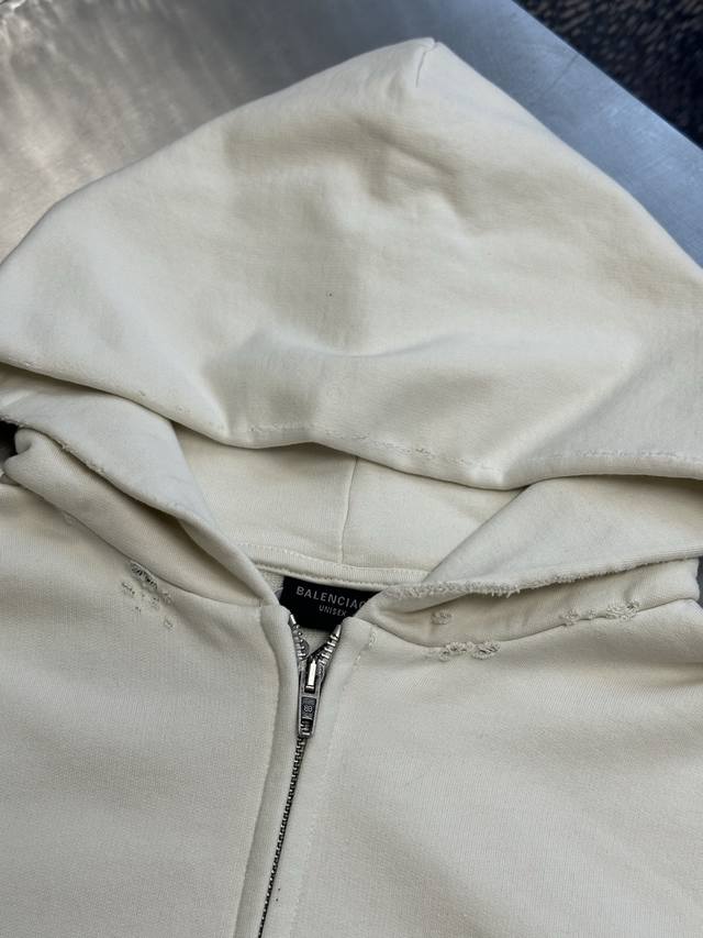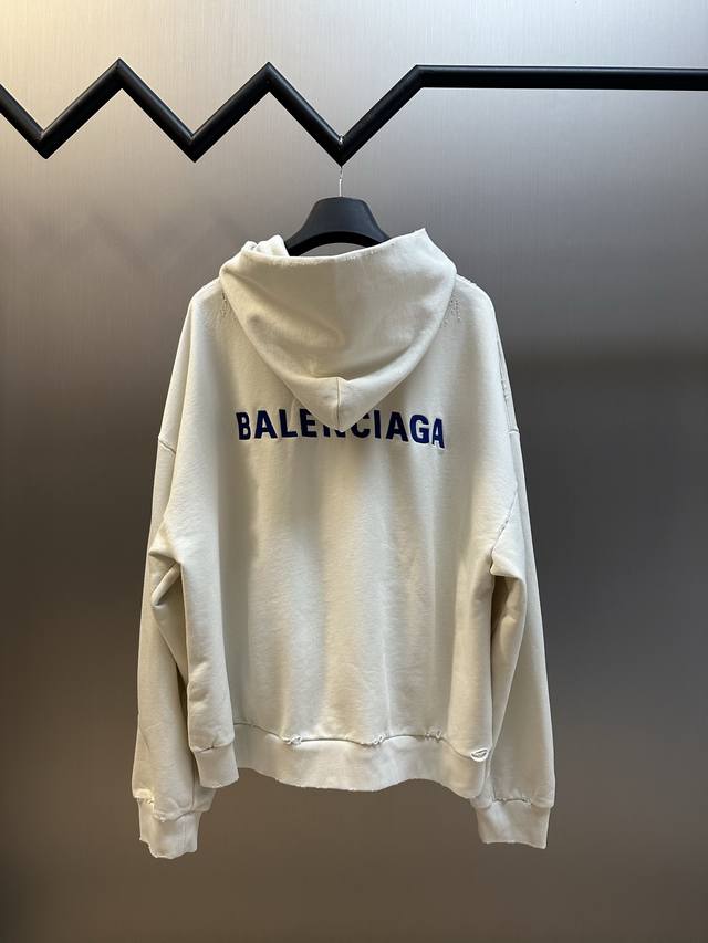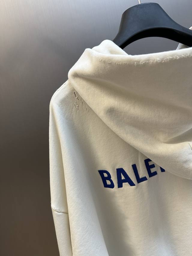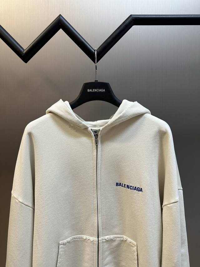 Balenciaga Embroidered Letter Hooded Zip-Up Sweatshirt DDD Made of 400g 100% combed cotton Parisian terry cloth, 420g 1*1 trendy rib knit, finished with distressed finish, imported embroidery DDD Size: SML DDD