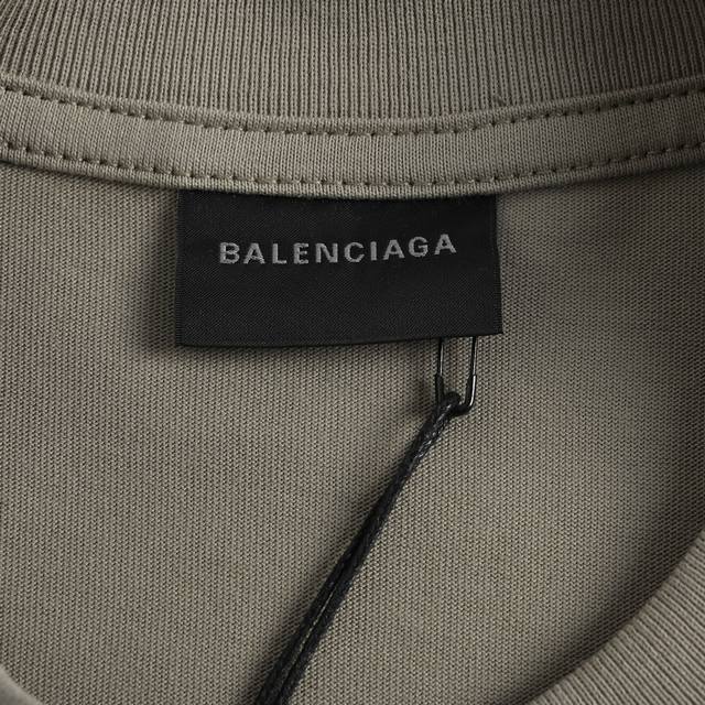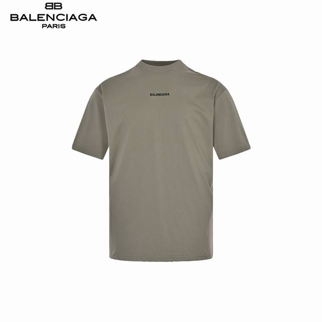 Balenciaga front and back embroidered short sleeves - dark khaki Made of 32-coun