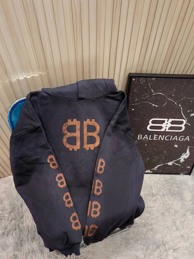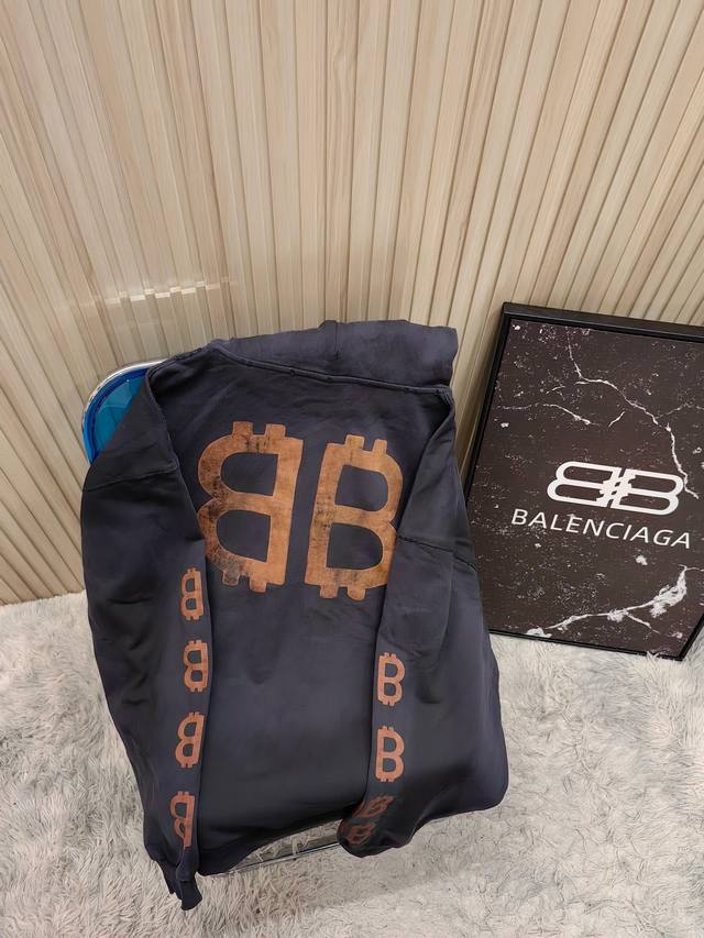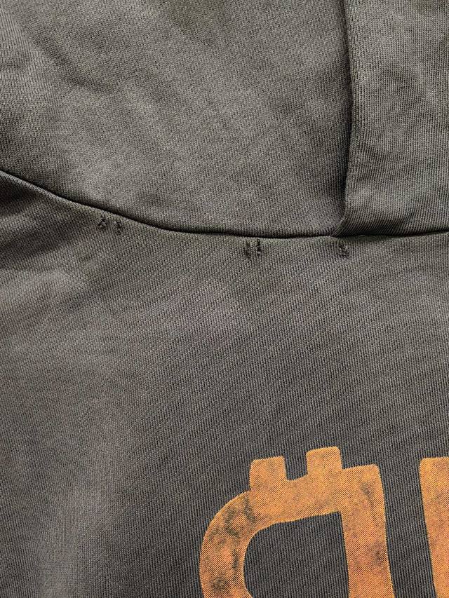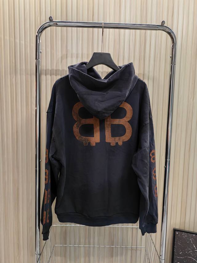 Fw23 Letter print hooded sweatshirt with double B mud dyeing and distressed, hood collar worn effect, unisex style.