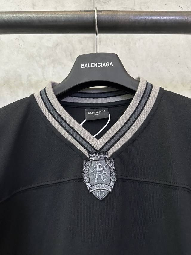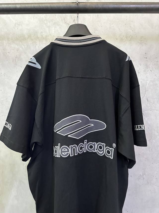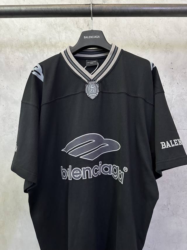 Balenciaga Fw25 Football Series 3M Embroidered V-Neck Drop Shoulder Football Jersey Long Sleeve T-Shirt. The fabric is 16S fine cotton plain weave with custom-woven cross-stitch ribbed knit. Dyeing is done in the same batch to ensure no color difference. The front and back embroidery uses a Tajima machine with 90,000 stitches, meticulously replicating the details of the authentic product. Custom-made hardware and threaded accessories are included. Unisex style. Color: Royal Blue, Black. Size: Xs, S, M, L.