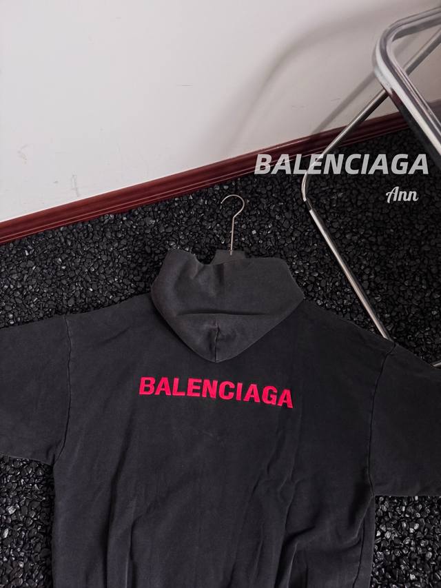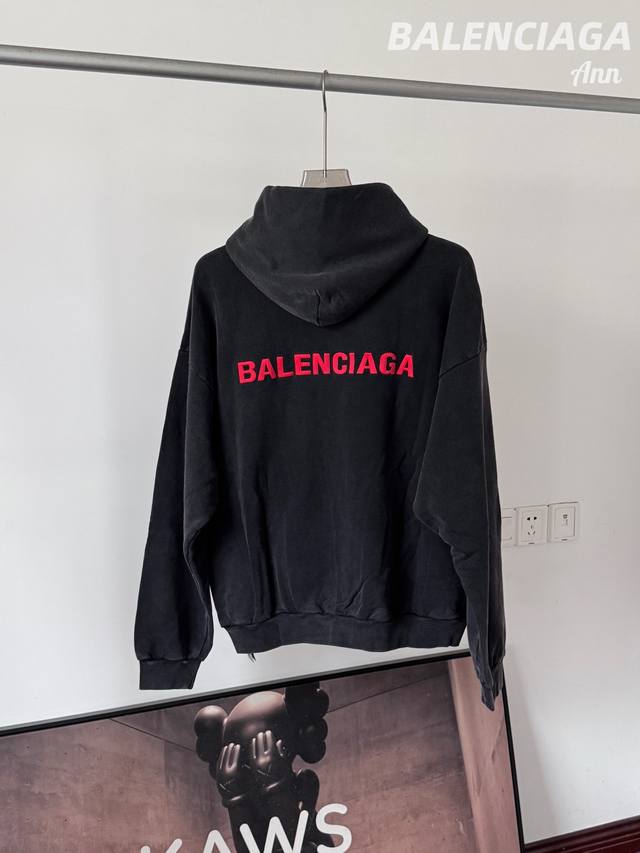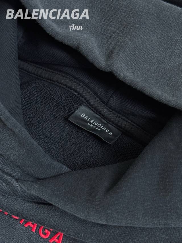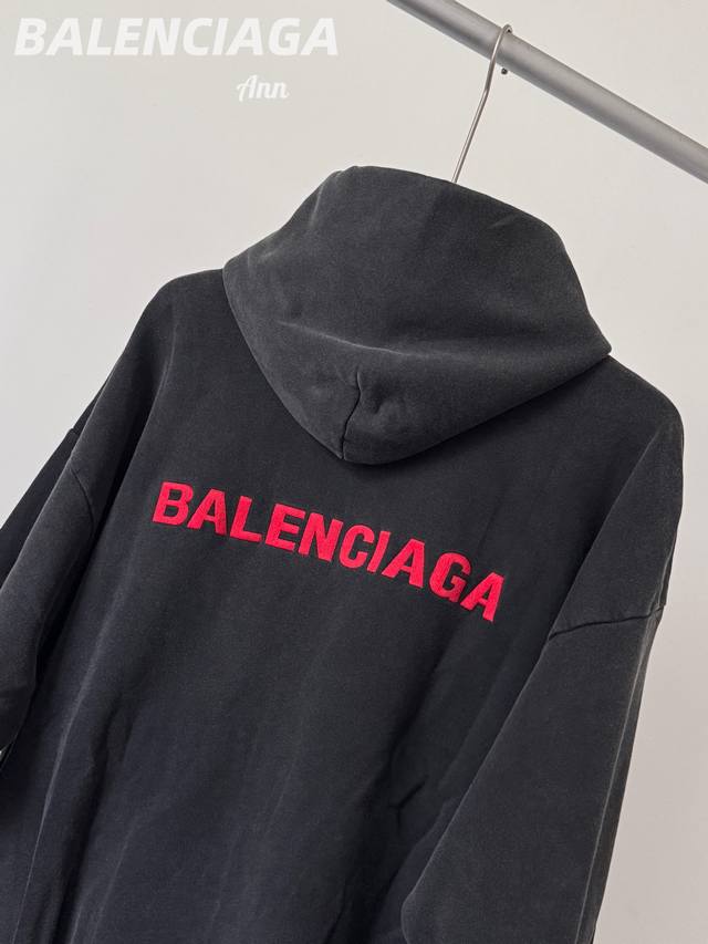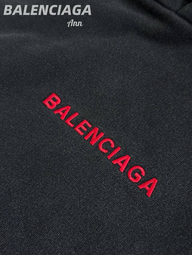 Balenciaga Fw25 Red Embroidered Letter Hoodie (