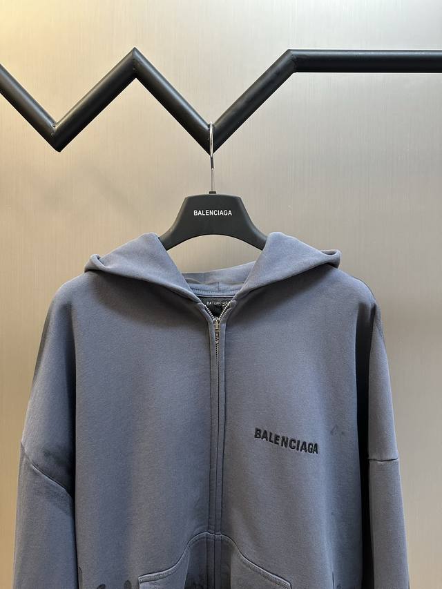 Balenciaga Letter Embroidery Hand-Painted Hooded Sweatshirt DDD Made of 400g 100% combed cotton Balenciaga sweatshirt fabric, 420g 1*1 trendy rib knit, 240g 100% cotton striped fabric, finished with aging wash, hand-painted, imported embroidery DDD Size: SML DDD