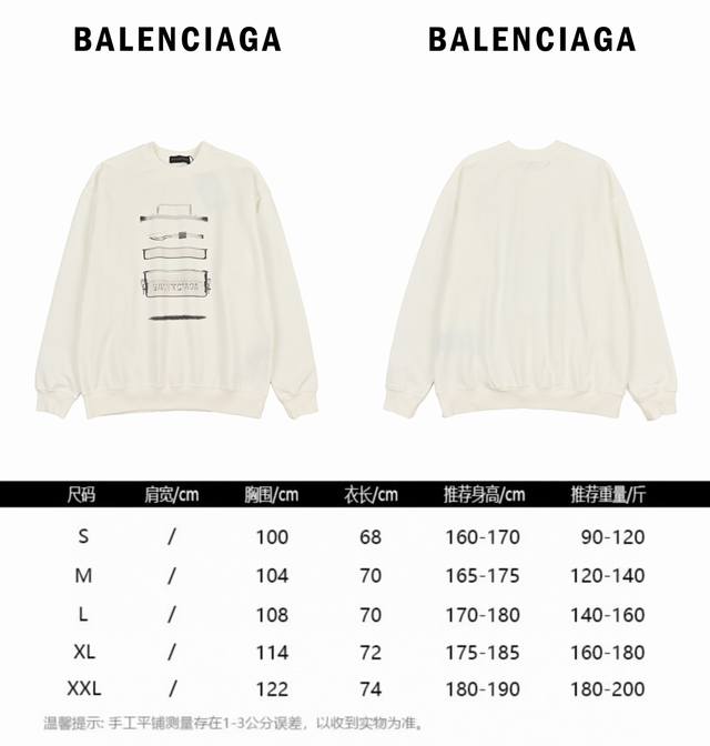 Balenciaga Lunchbox Letter Print Crew Neck Sweatshirt, Classic Style, Thick Cotton, Includes Dewu Anti-counterfeiting Card and Full Packaging, High Quality. The sweatshirt is made with 460G multi-count yarn weaving technology for a thick feel. The 100% cotton fabric is breathable, comfortable, and has a top-quality feel. Item No. 1118190003. Colors: White, Black. Sizes: S, M, L, XL, XXL.