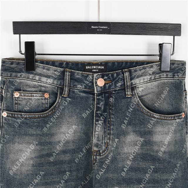 Balenciaga New All-Over Print Diagonal Stripe Denim Pants (Ddd) Classic wash color, sourced directly from official channels, using premium imported denim fabric. Made with select 14oz pure Japanese Okayama denim, the fabric is soft and delicate yet resilient, offering excellent comfort. The heavy-duty washed and distressed finish gives it a unique vintage style and outstanding color. The latest leather label highlights the brand's characteristics. Impeccable details, from hardware to stitching, showcase meticulous craftsmanship. The perfectly tailored cut provides a flattering, slimming effect. The incredibly versatile straight-leg style pairs effortlessly with any top in your wardrobe, offering wide compatibility and a stylish yet casual look. A must-have for quality enthusiasts! Size: S-XL (DDD)
