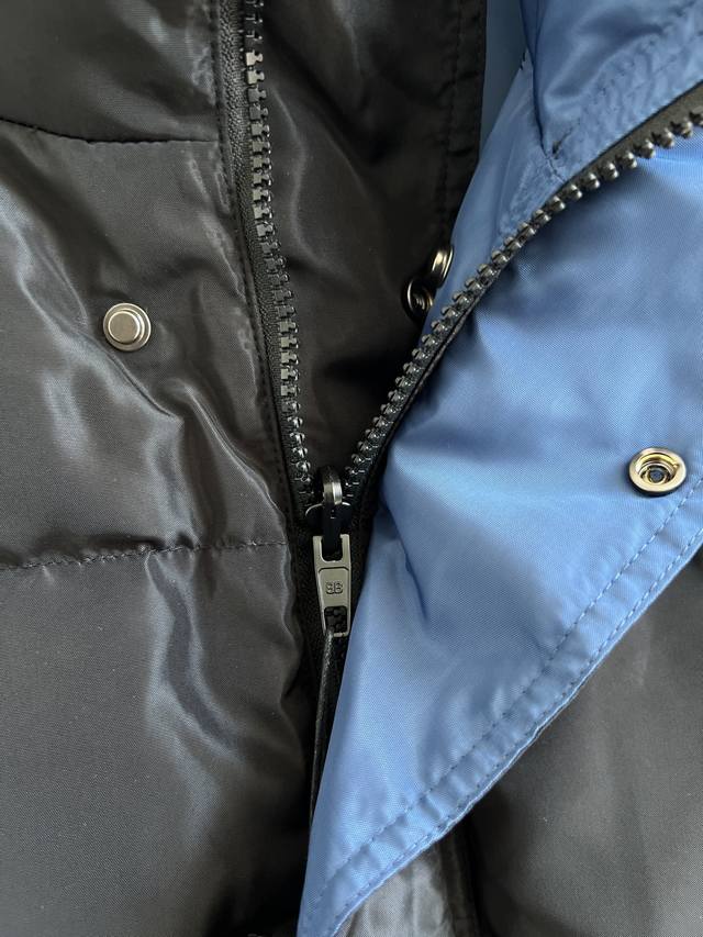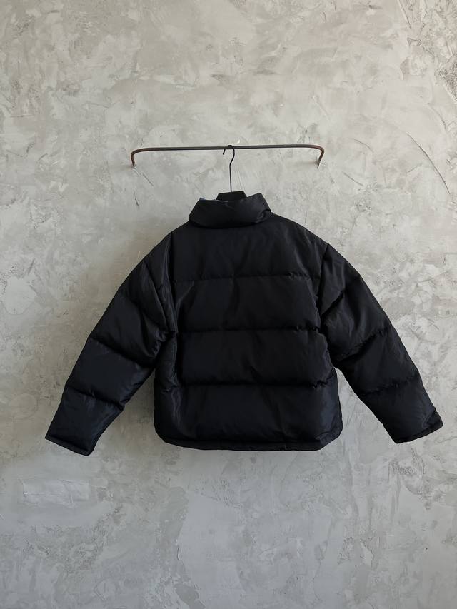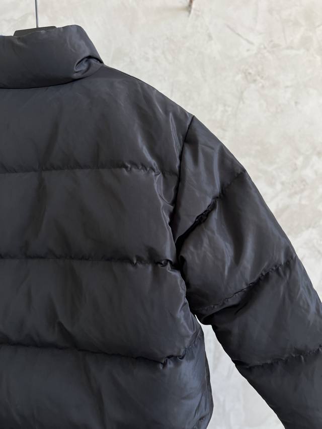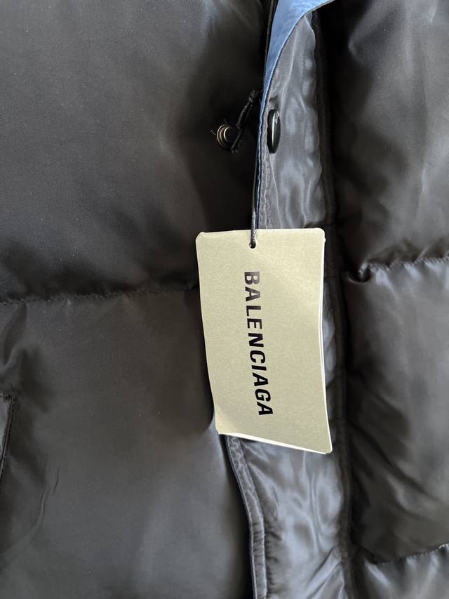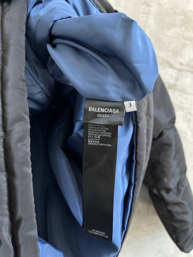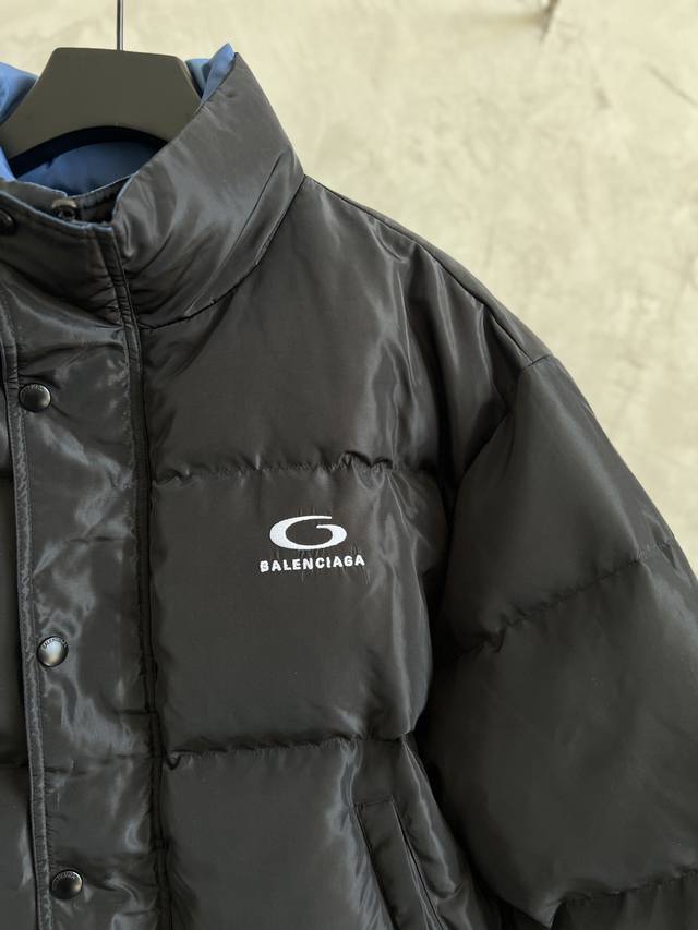 Balenciaga New Fall/Winter Reversible Down Jacket with Loop Sports Icon Embroidery! A two-in-one, new fall/winter cocoon-shaped down jacket with a simple and versatile design. Features double logo embroidery, a double-sided zipper, hood , and down filling . The latest Loop Sports Icon embroidery on both sides adds a clean and simple look. It's easy to wear on either side and stylish no matter how you style it. The stand-up collar is warm, stylish, and detailed. It has a great design sense, and the cocoon shape adds to its fashionable appeal. Although it's a down jacket, it has a cool, jacket-like feel. It's highly warm, elastic, and has a very high loft. Both the outer and inner layers use high-density fabric with a separate down filling process and precise machine filling technology, ensuring even down distribution and all-around warmth. Although lightweight and soft, it has a generous and full down filling. This is what good down is all about. Novel and stylish. Sizes: 1-2-3. Colors: Blue, Black.