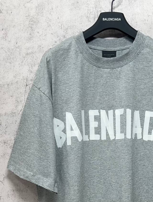 garment washed and worn out, the tape texture and the yellow tape feeling on the back are all debugged many times before they come out, the weight after washing is 260G, matching the new 1 original custom dyeing, the front is printed with elliptical machine screen + digital direct injection integrated machine, imported environmentally friendly glue + transparent pulp base and then scraped with more digital pulp, according to the original refined drawings, the color is deepened at the letter connection position, the overall visual effect is like the handmade decal effect of masking paper, the back is printed with fluorescent ink, and the letter connection position is all hand-painted with blurred strokes, and the overall visual effect is more three-dimensional! The garment is hand-worn + cut and torn, and softener is added to wash and fry the color to make it old and soft.