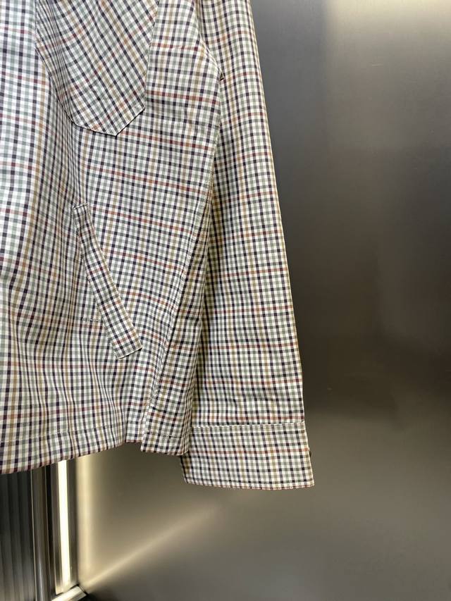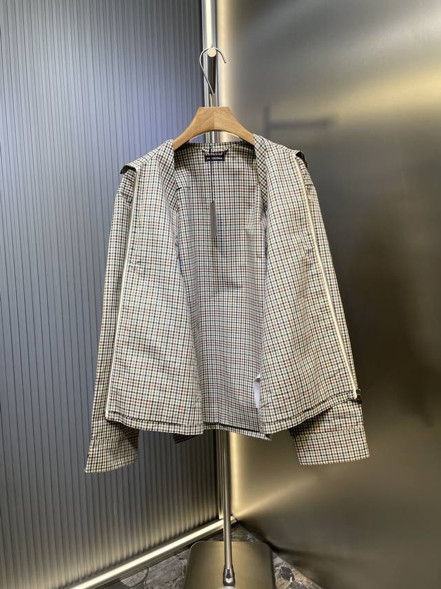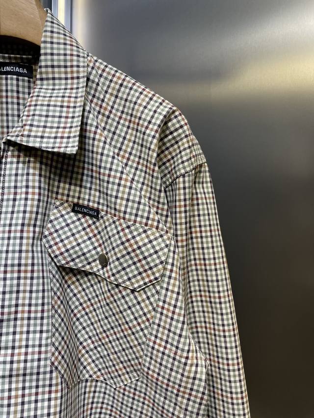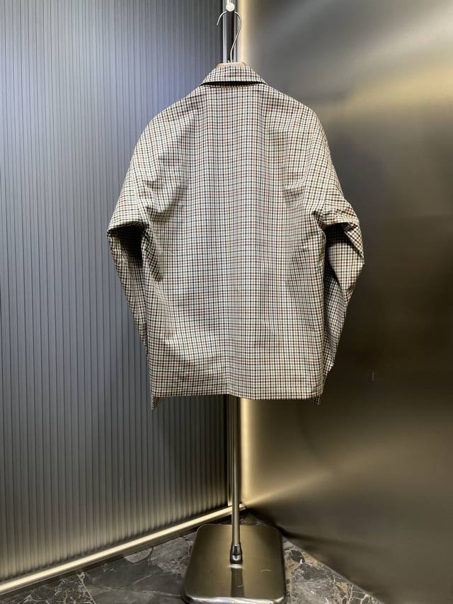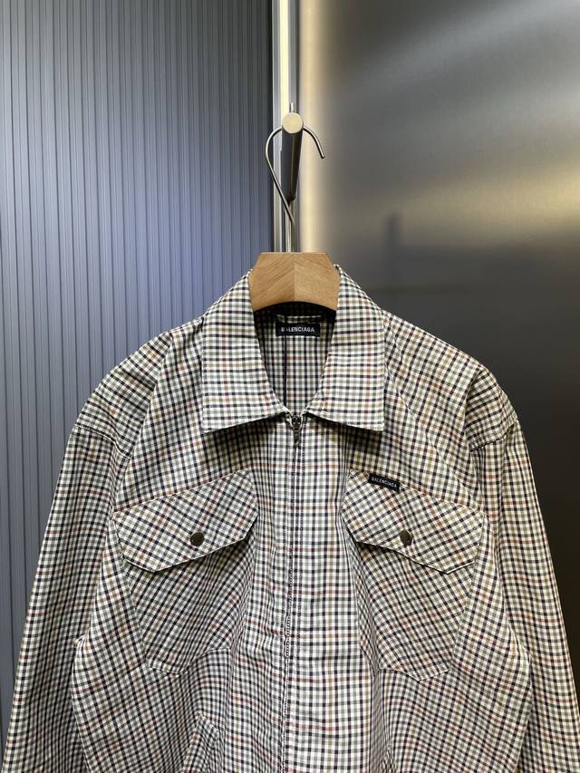 Double-sided high-quality plaid tailoring Concealed metal zipper placket Symmetrical flap pockets on the chest Letter label embellishment Silhouette tailoring design Loose fit Unisex