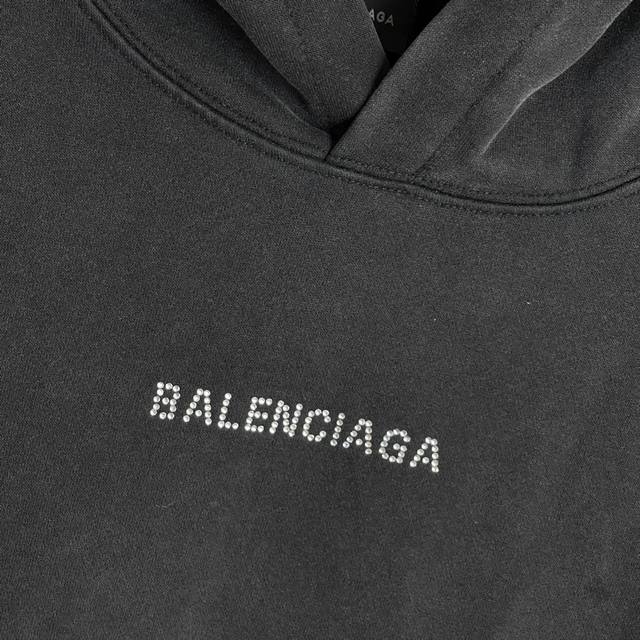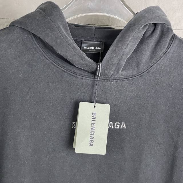 Balenciaga Paris Small Letter Rhinestone Washed Hooded Sweatshirt (Ddd). Made with 400g Paris-specific double yarn*. High-grammage double yarn ribbing is heat-pressed using a high-temperature air press machine. The fabric is treated with heat and pressure through contact with high-temperature gas, ensuring even heat distribution. The fabric has been washed and distressed for a better feel and texture, making it less prone to deformation, shrinkage, and fading, maintaining its long-lasting beauty. Unisex style! (Ddd) Sizes: S-XL (DDD)