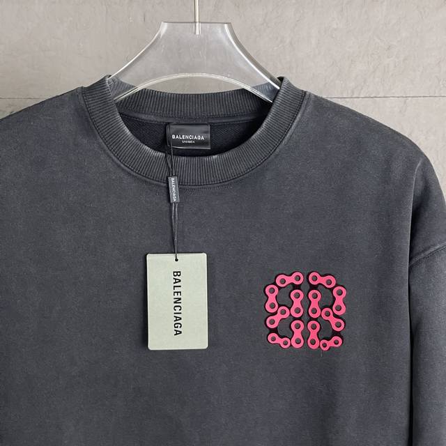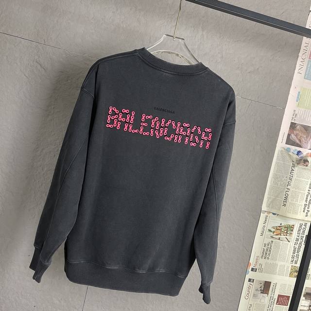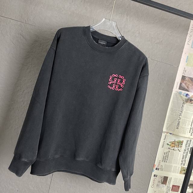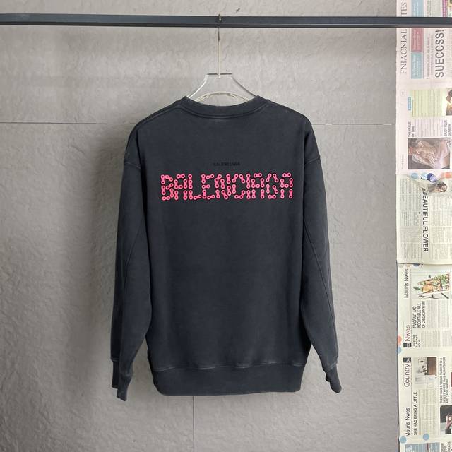 Balenciaga Paris Washed Crew Neck Sweatshirt. Made with 400g Paris-specific double yarn fabric. High-weight double yarn ribbed wash for a distressed feel and superior texture. Resistant to deformation, shrinkage, and fading, maintaining its beauty for a long time. Unisex style! Colors: Black, Light Gray, Dark Gray, Pink. Sizes: S-XL.