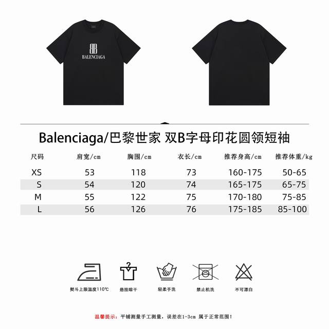 Balenciaga Parisian family double B letter print round neck short sleeves Brick