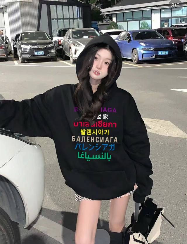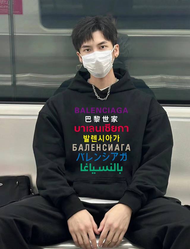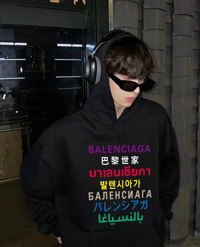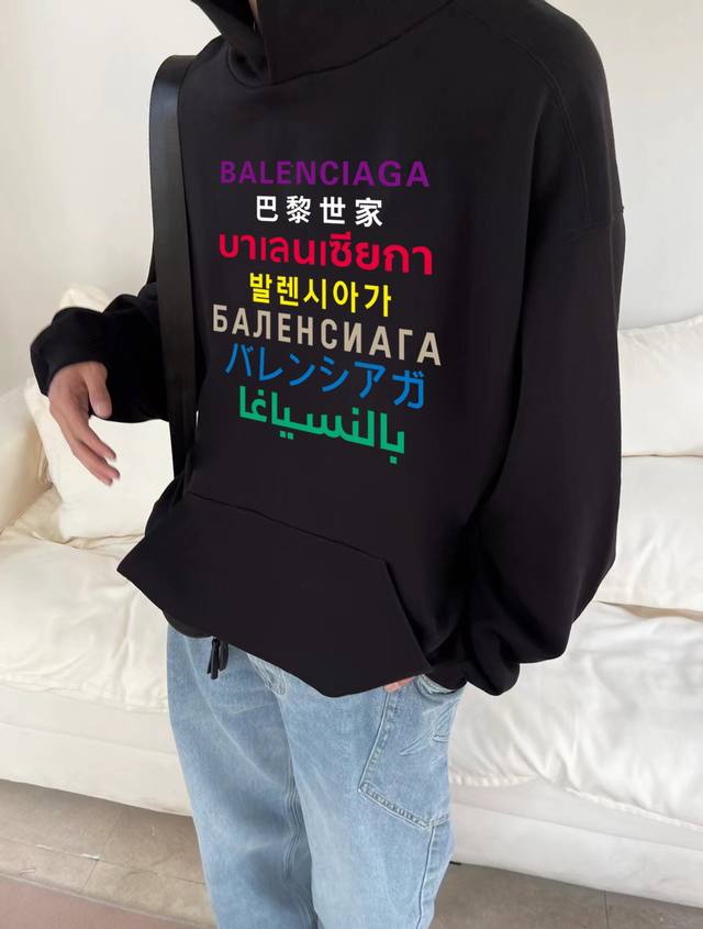Balenciaga Seven-Language Spring/Autumn Hooded Sweatshirt (