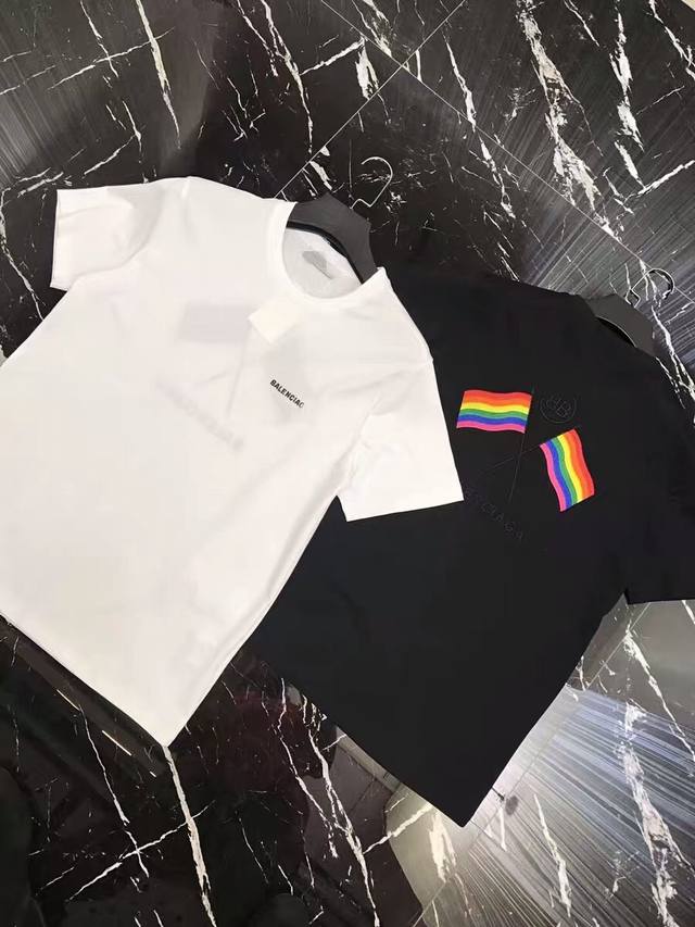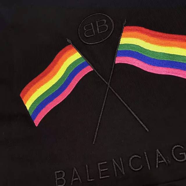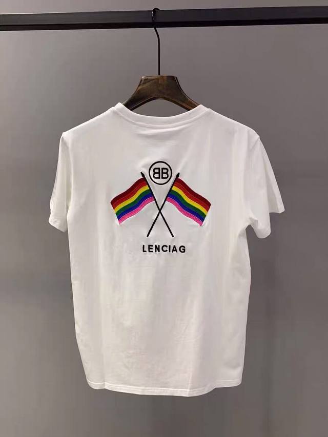 Balenciaga Spring/Summer New Embroidered Logo Lettering T-Shirt with Double B-Shaped Embroidered Rainbow Flag on the Back, Unisex Style. Custom-made pure cotton mercerized cotton with a delicate and full embroidered rainbow flag on the back. The Balenciaga fashion show's runway mimicked an operating room setting, presenting a new look through the deconstruction and reconstruction of materials and fabrics, echoing the theme of this collection. The collection expresses praise for numerous cultural elements, and all fabrics are high-density pure cotton mercerized cotton! Highly soft, lightweight, and delicate, absolutely not see-through! Authentic fabric, color and pattern matching. The classic logo on the chest blends perfectly! Oversized style , suitable for couples. White and black. Ddd M Shoulder width 45cm, Chest 100cm, Length 71cm, Sleeve length 21cm Ddd L Shoulder width 46cm, Chest 104cm, Length 73cm, Sleeve length 22cm DDD