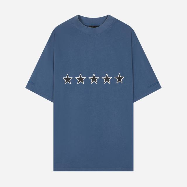 Balenciaga Star Slogan Print Embroidered Short-Sleeve T-Shirt (Ddd) Color: Blue (Ddd) Sizes: Xs-L (Ddd)