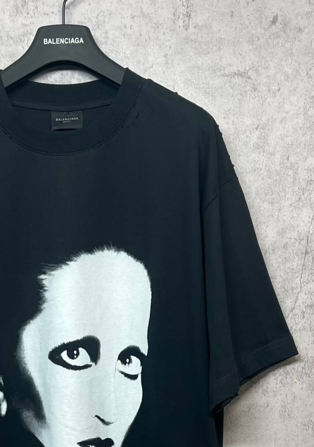 Paris co-branded musician Mini portrait direct spray short sleeves, front and back printing, the whole shoulder is worn out and old-fashioned