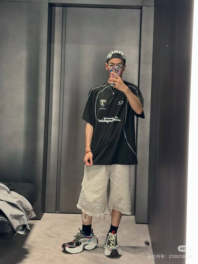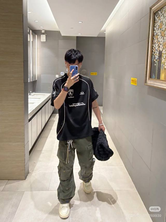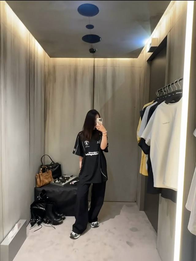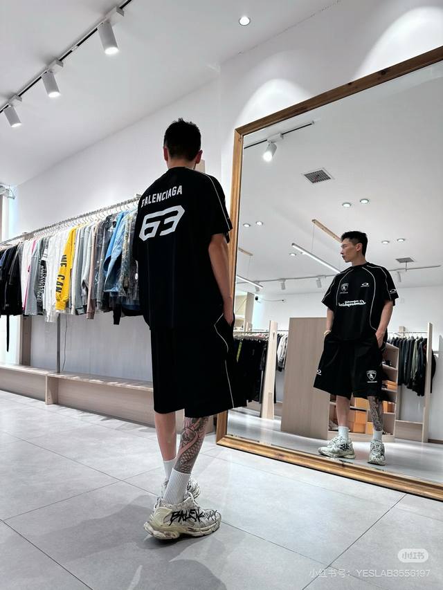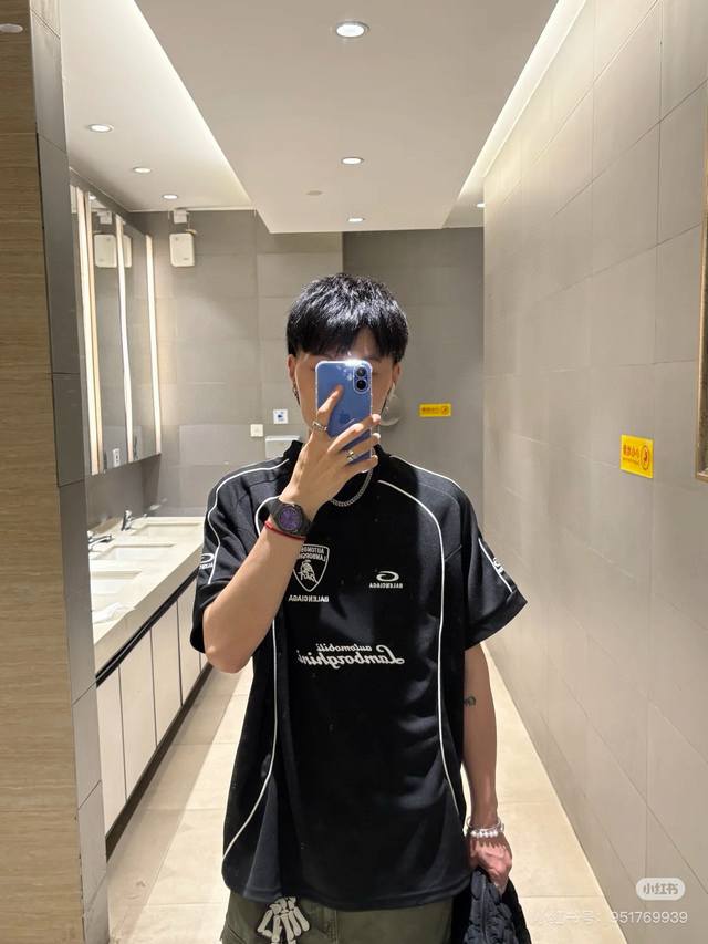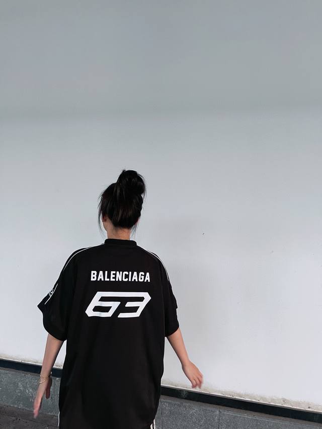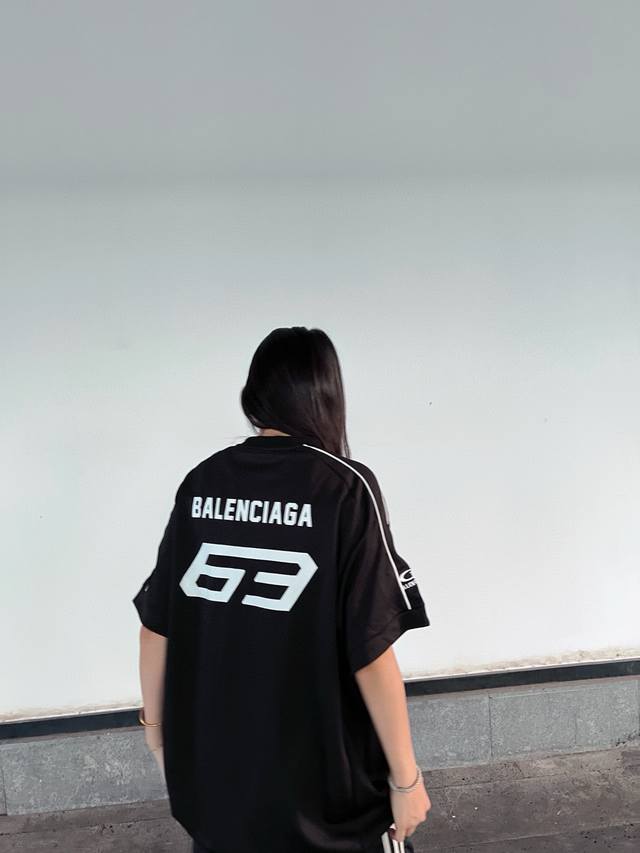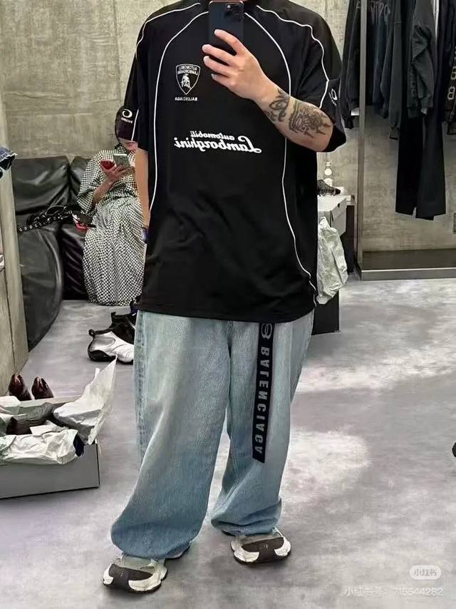 Balenciaga Top-Tier 1:1 Official Quality Balenciaga & Lamborghini Collaboration Football Series No. 63 Short-Sleeve T-Shirt. Made of custom sportswear with a technical mesh plain knit fabric, featuring Lamborghini Team artwork prints and embroidery on the front and back, Balenciaga logo designed for Automobili Lamborghini, and embroidered details on the left and right sleeves. Multi-panel short sleeve. Color: Black. Size: Xs, S, M, L.