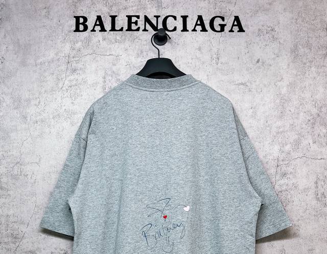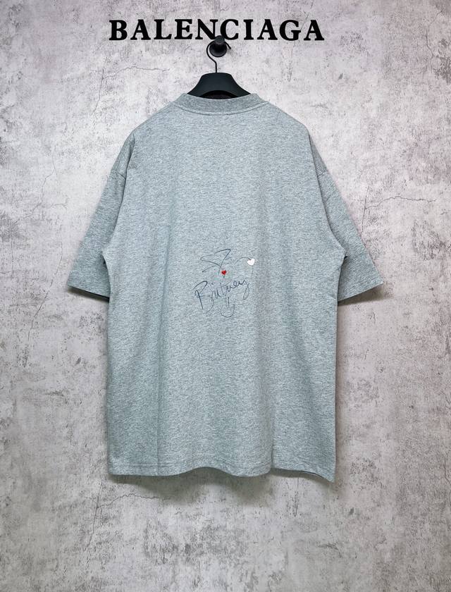 Balenciaga top-tier 1:1 official quality. Balenciaga latest colorful printed and embroidered crew neck short-sleeved shirt. Made with 260g double-yarn combed pure cotton fabric from Paris, featuring a cross-ribbed crew neck and dropped shoulders. Vertical ribbed weave from top to bottom, with detailed neckline and sleeve length positioning. Also features a shaping finish for a soft and comfortable feel. Unisex style with all three labels on. Color: Gray. Size: Xs, S, M, L.