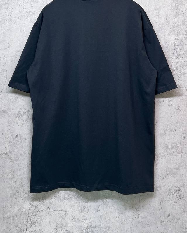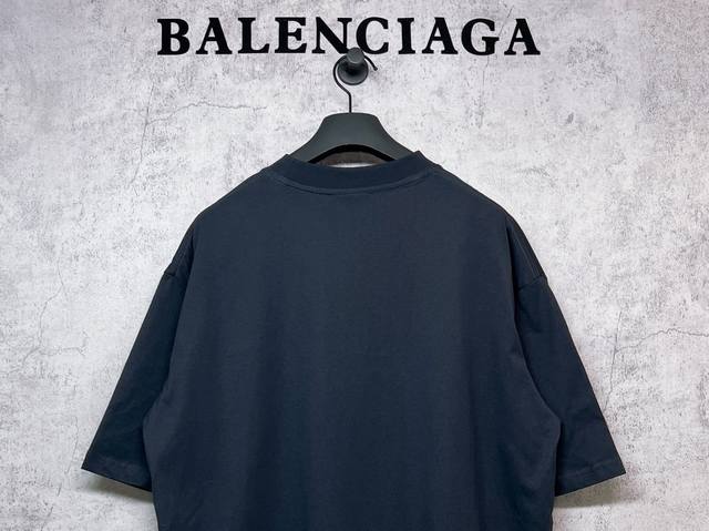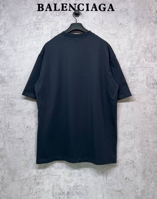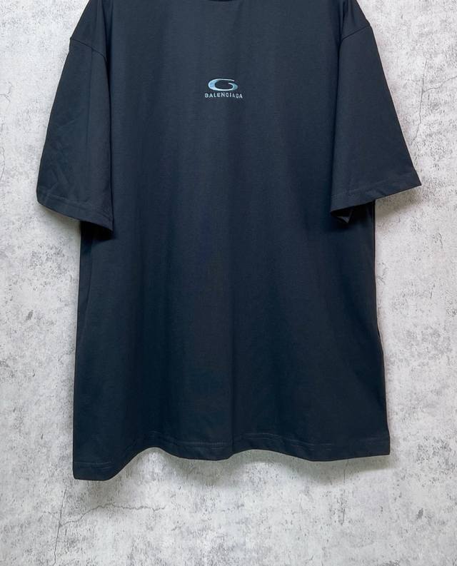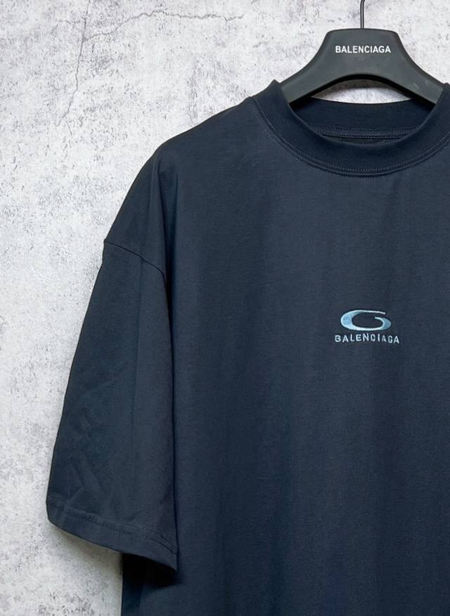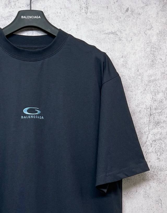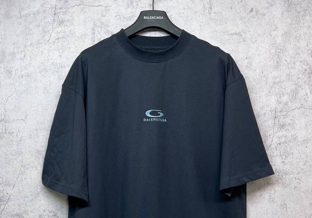 Balenciaga Top-Tier 1:1 Official Quality Short-Sleeve T-Shirt with Embroidered Blue Logo (Ss25). Made with 260g double-yarn combed pure cotton fabric from Paris, featuring a cross-ribbed crew neck and dropped shoulders. Vertical ribbed weave from top to bottom adds detail to the neckline and sleeve length. Specially treated for a soft and comfortable feel. Unisex style with all three labels on. Color: Black. Size: Xs, S, M, L.