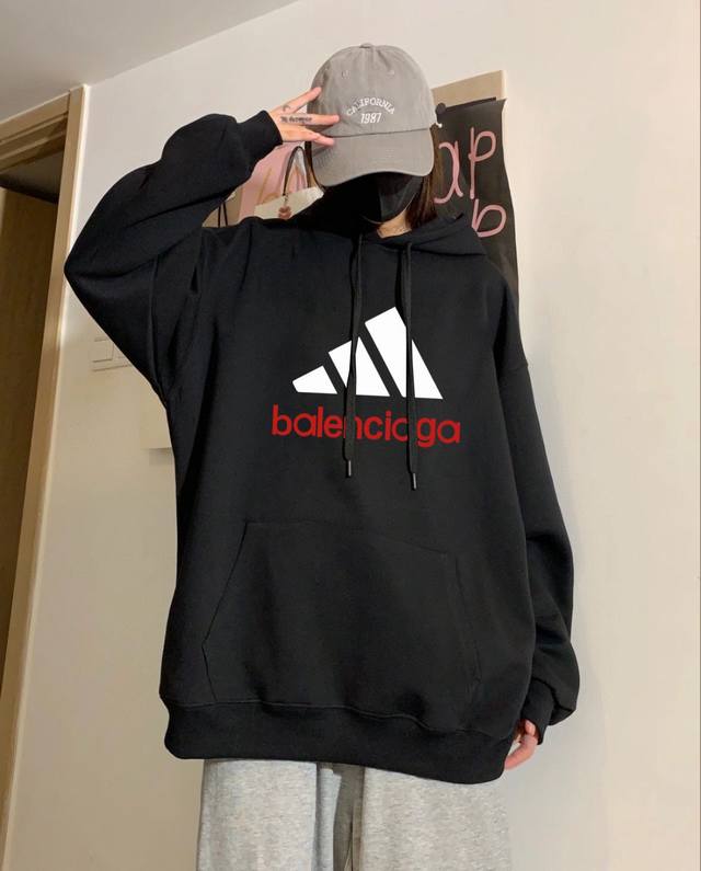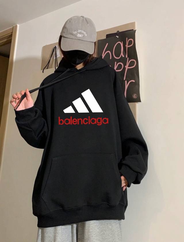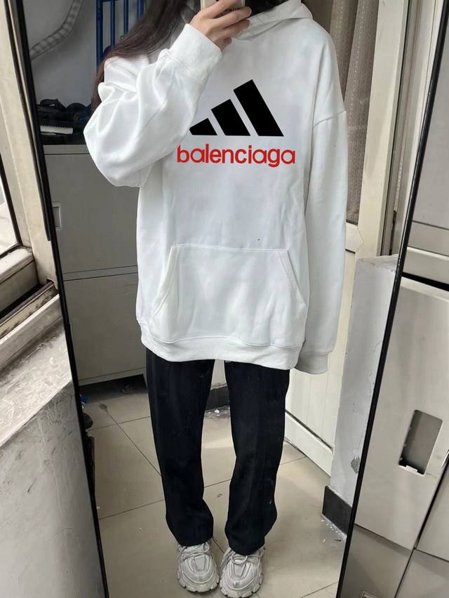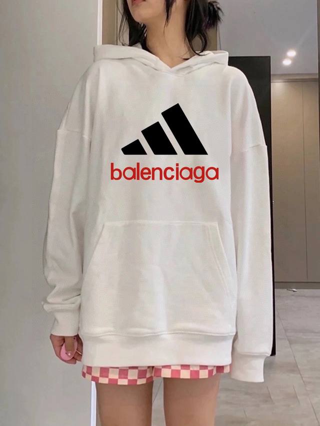 Balenciaga X Adidas Collaboration Spring/Autumn Hooded Sweatshirt. Made with Xinjiang cotton fabric, this sweatshirt is pill-resistant, colorfast, and shape-retaining. Super high quality, incredibly soft to the touch, and sturdy and thick. Perfect for layering or wearing alone! High-quality workmanship from a reputable manufacturer, with meticulous attention to detail in every stitch. Features include 100% cotton ribbed cuffs and hem for a secure and comfortable fit. Excellent attention to detail and high-quality craftsmanship. A truly high-quality garment. Colors: Black, White. Sizes: M, L, XL. M: Shoulder width 54cm, Chest 125cm, Length 70cm. L: Shoulder width 56cm, Chest 125cm, Length 72cm. XL: Shoulder width 58cm, Chest 74cm, Length 74cm. Measurements are taken manually, with an error of approximately 1-2cm.