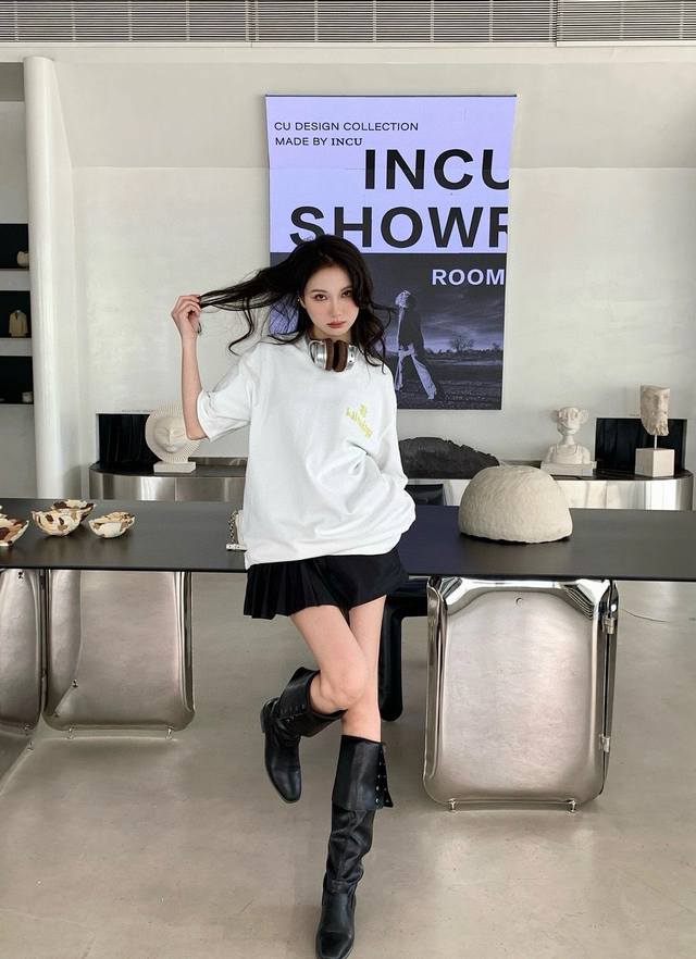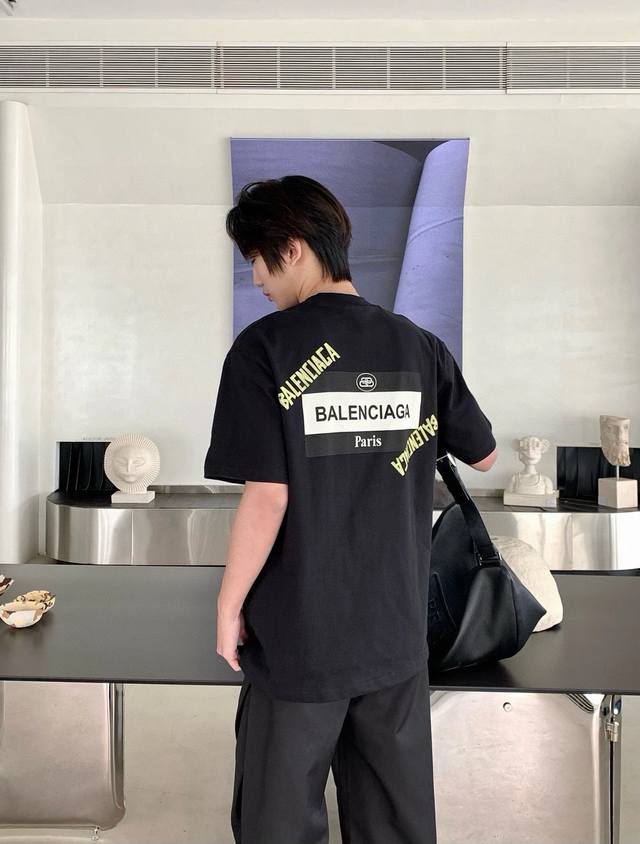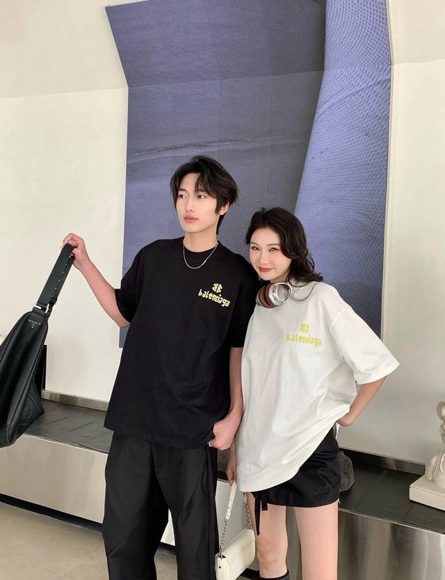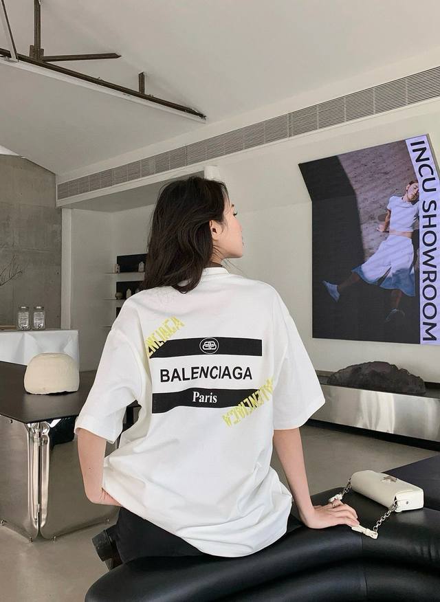 Balenciaga24Ss imported white ink direct printing 260G loose wide version double