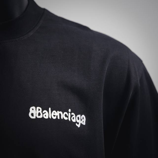 Official website synchronization Balenciaga Graffiti letters printed short-sleeved T-shirt. Simple and versatile style. 265g double yarn fabric. 350g double yarn cross rib collar. Super loose version. Unisex style.