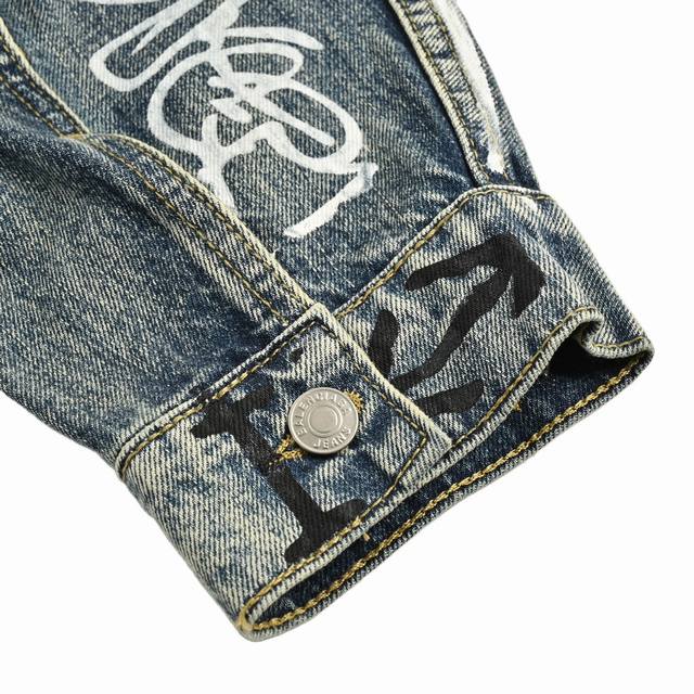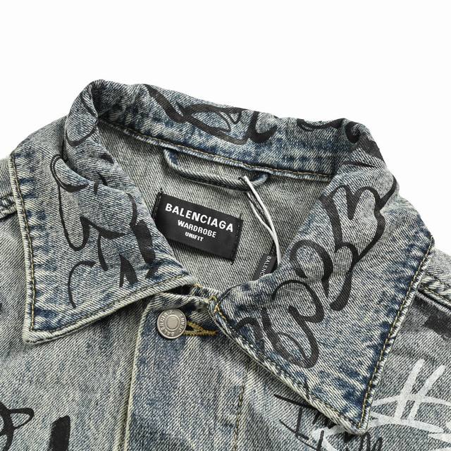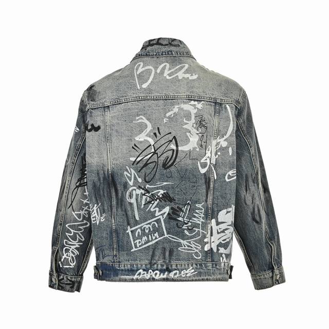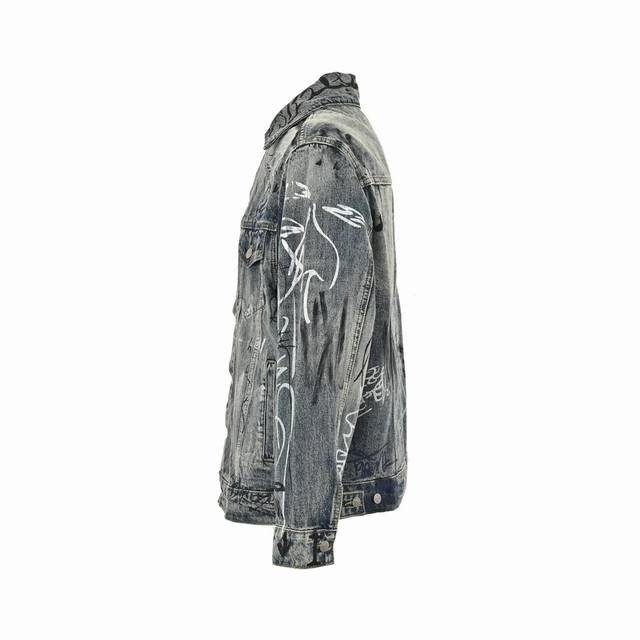 Balenciaga's graffiti-painted denim jacket. The overall texture is incredibly so