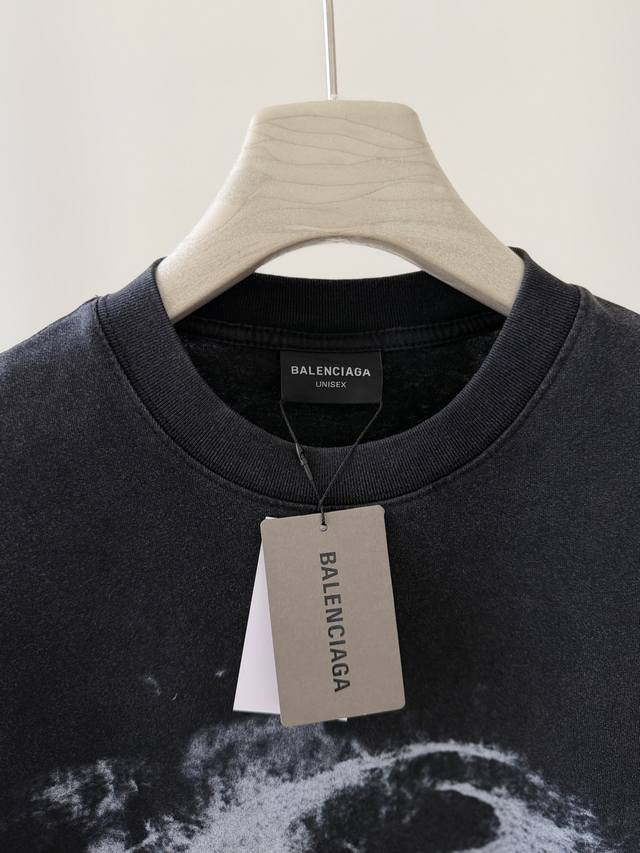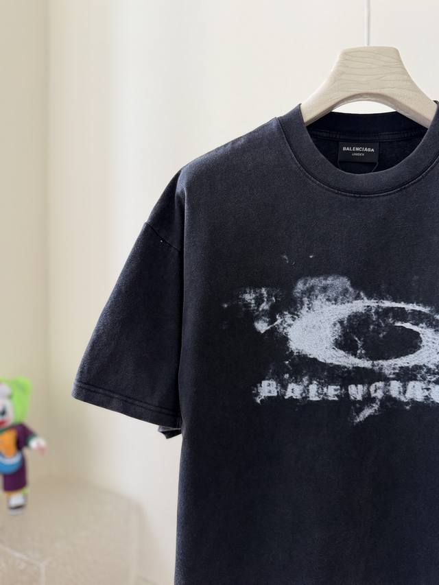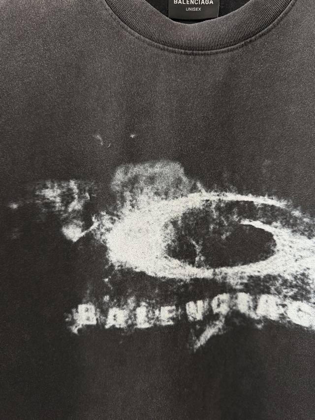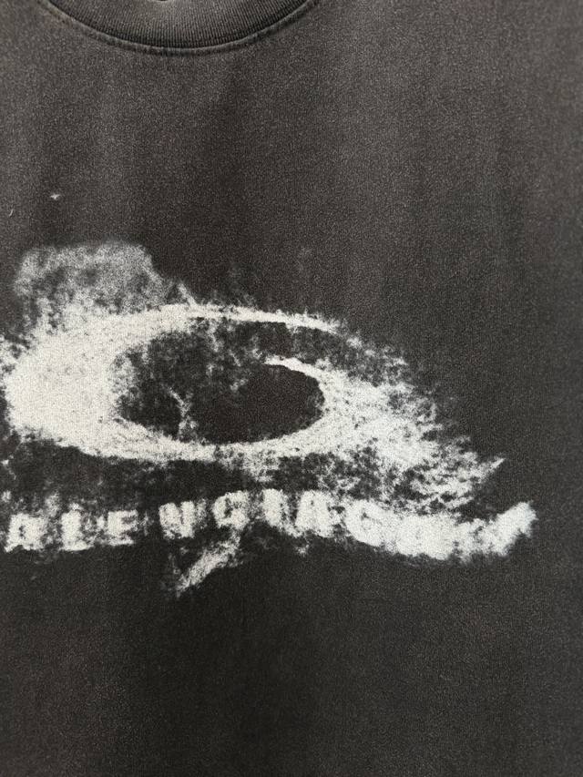Balenciaga's new smoke ring print short-sleeved T-shirt and hooded jacket, 26Ss early spring style, 300g heavyweight wash, distressed retro style, classic single-ring logo smoke effect. This season's most fun and versatile item, made of double-yarn pure cotton fabric with digital print, unisex loose fit. Sizes: 1, 2, 3, 4.